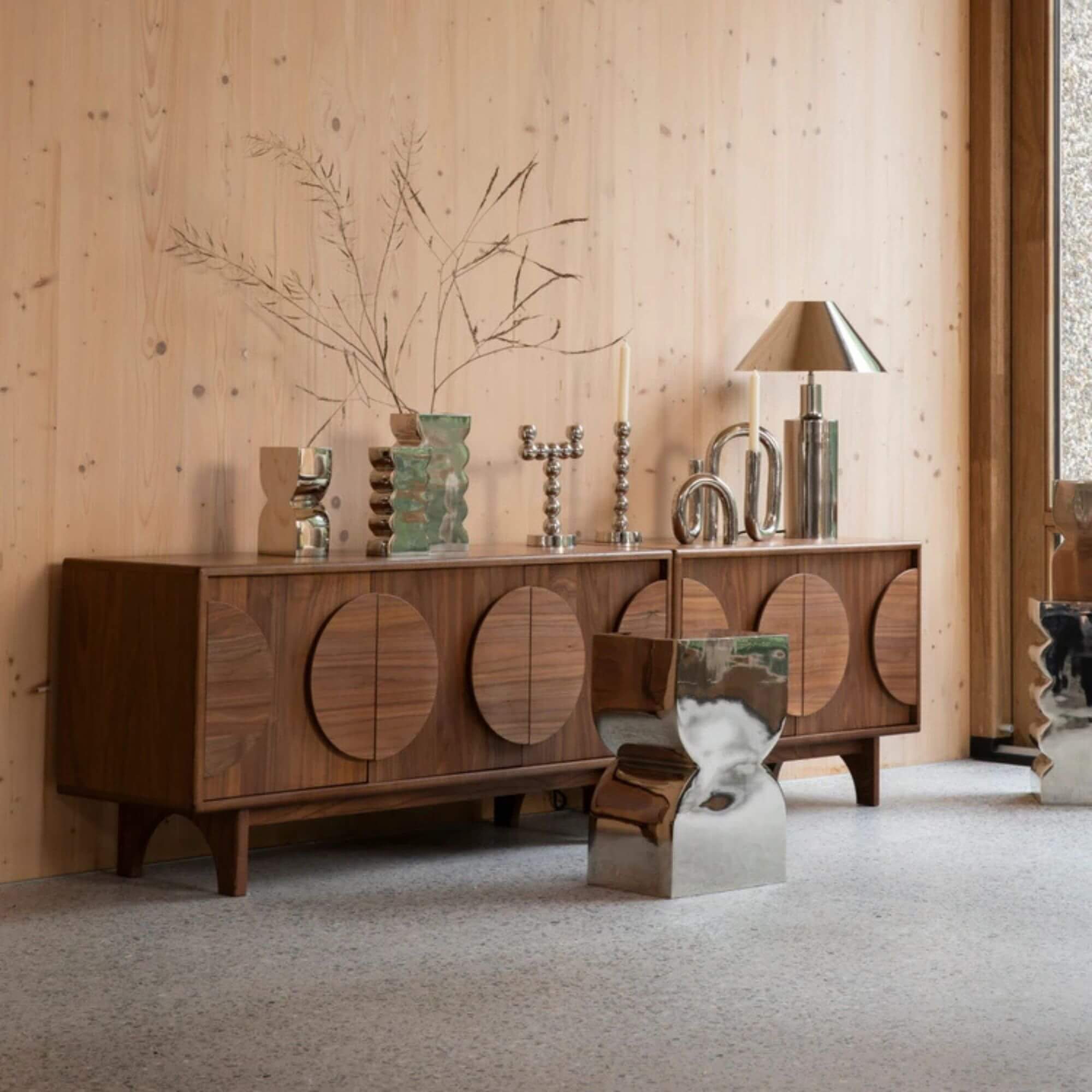 Conçue en métal chromé (oui, le chrome fait son grand comeback !), elle mêle modernité et touche vintage avec brio. Son look légèrement rétro ajoute juste ce qu’il faut de glamour à une déco contemporaine.