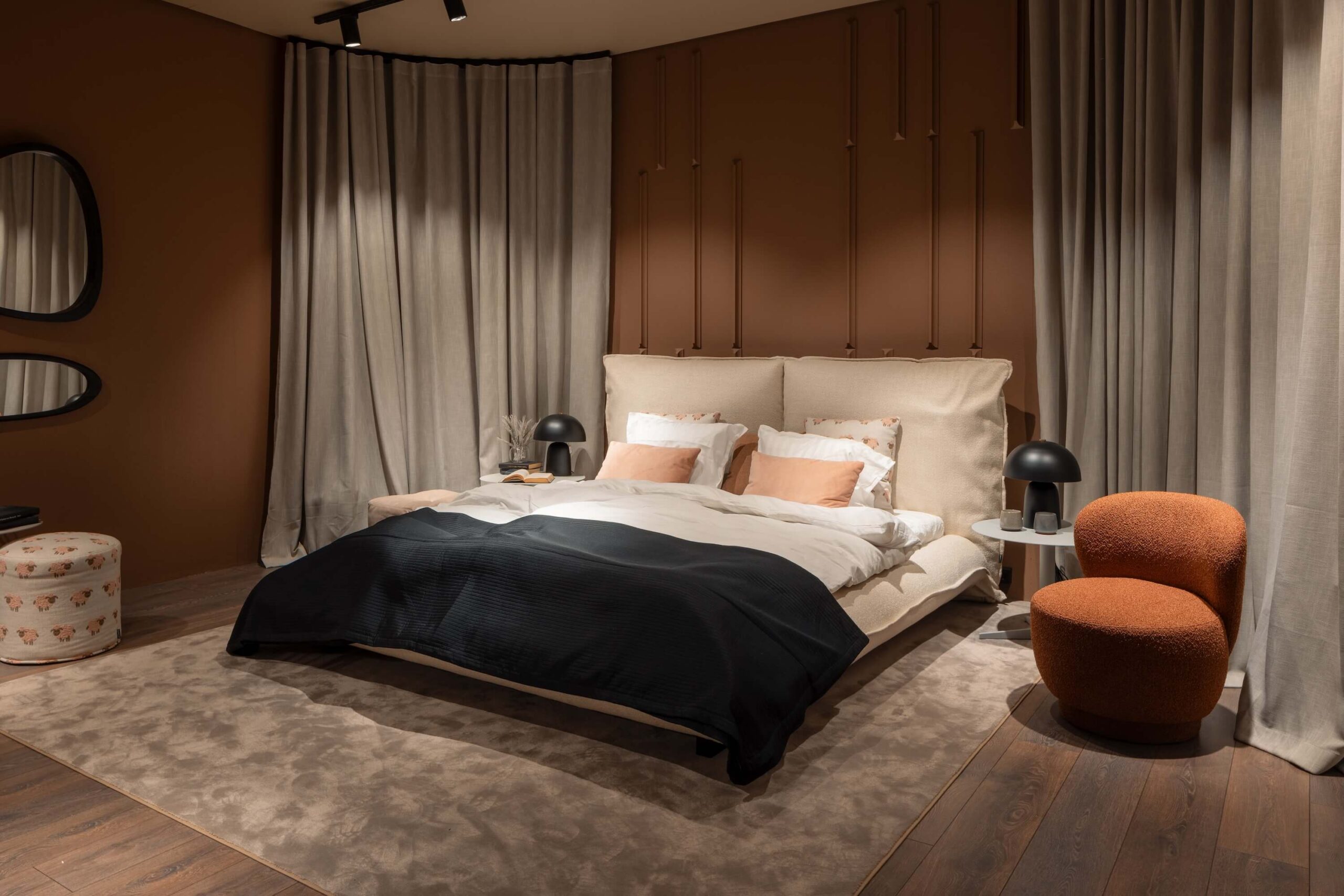 Lit Moya Furninova au design luxueux et enveloppant, conçu pour transformer la chambre en un véritable espace de détente et de bien-être. Avec sa silhouette généreuse et sa présence affirmée, ce lit devient immédiatement la pièce maîtresse de la pièce.