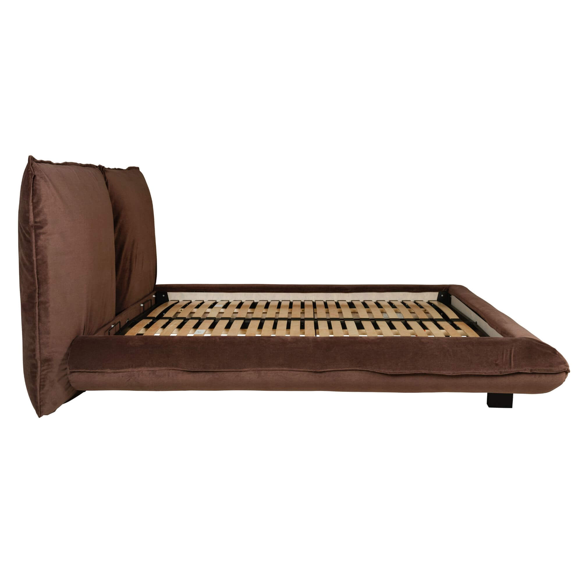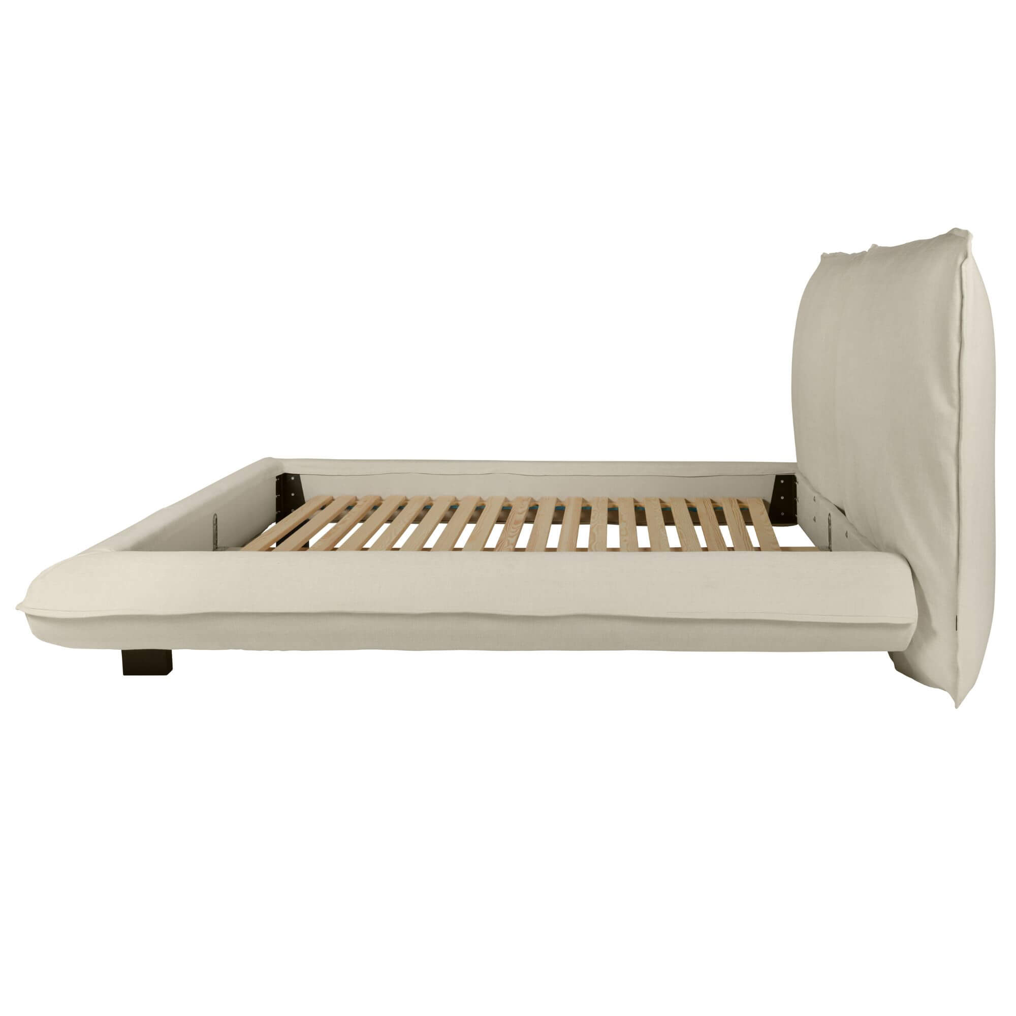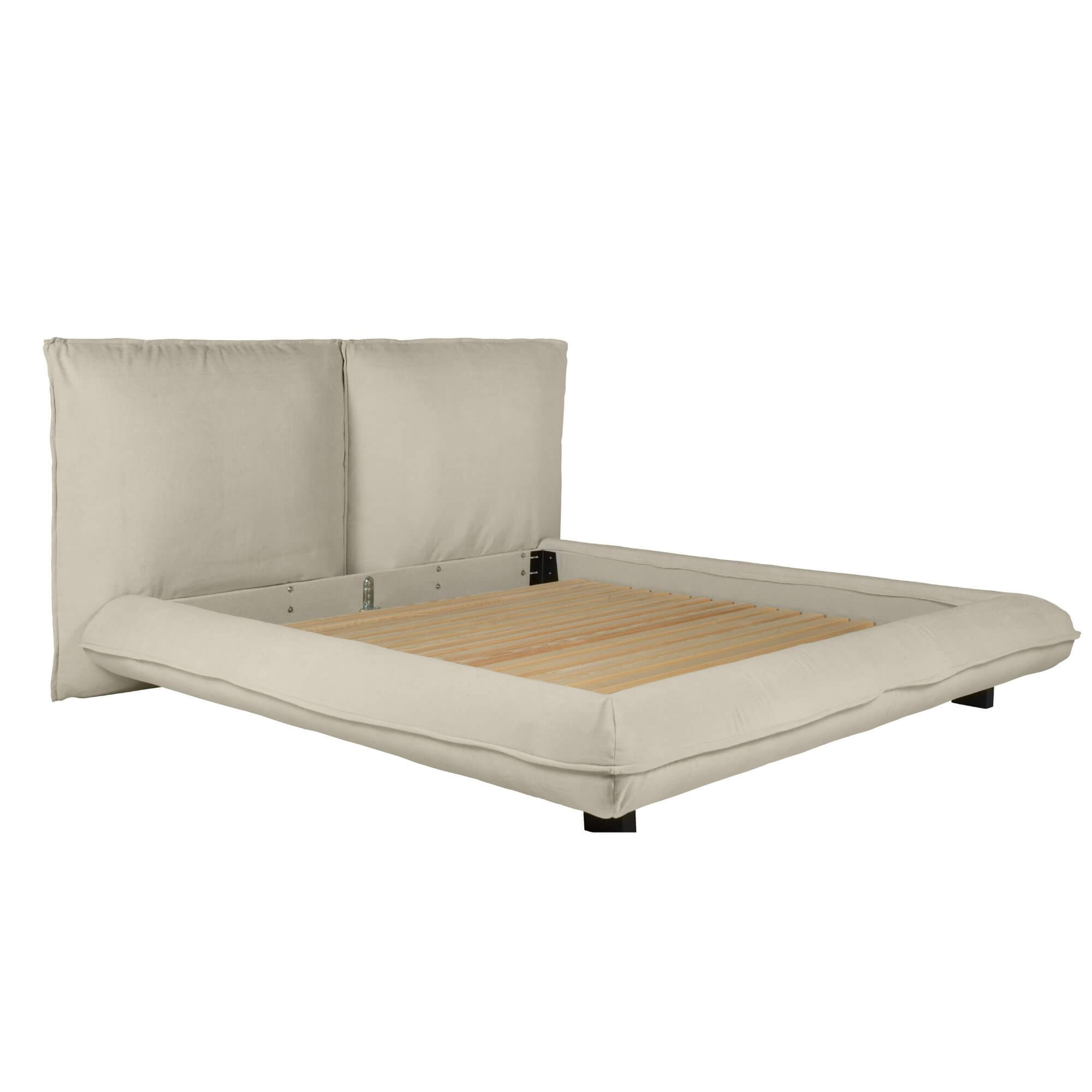 Sa tête de lit surdimensionnée, inspirée de grands coussins moelleux, invite à s’y adosser confortablement pour lire, se détendre ou simplement profiter d’un moment de calme. Son rembourrage généreux offre une sensation de douceur exceptionnelle, renforçant l’aspect cocooning du lit.