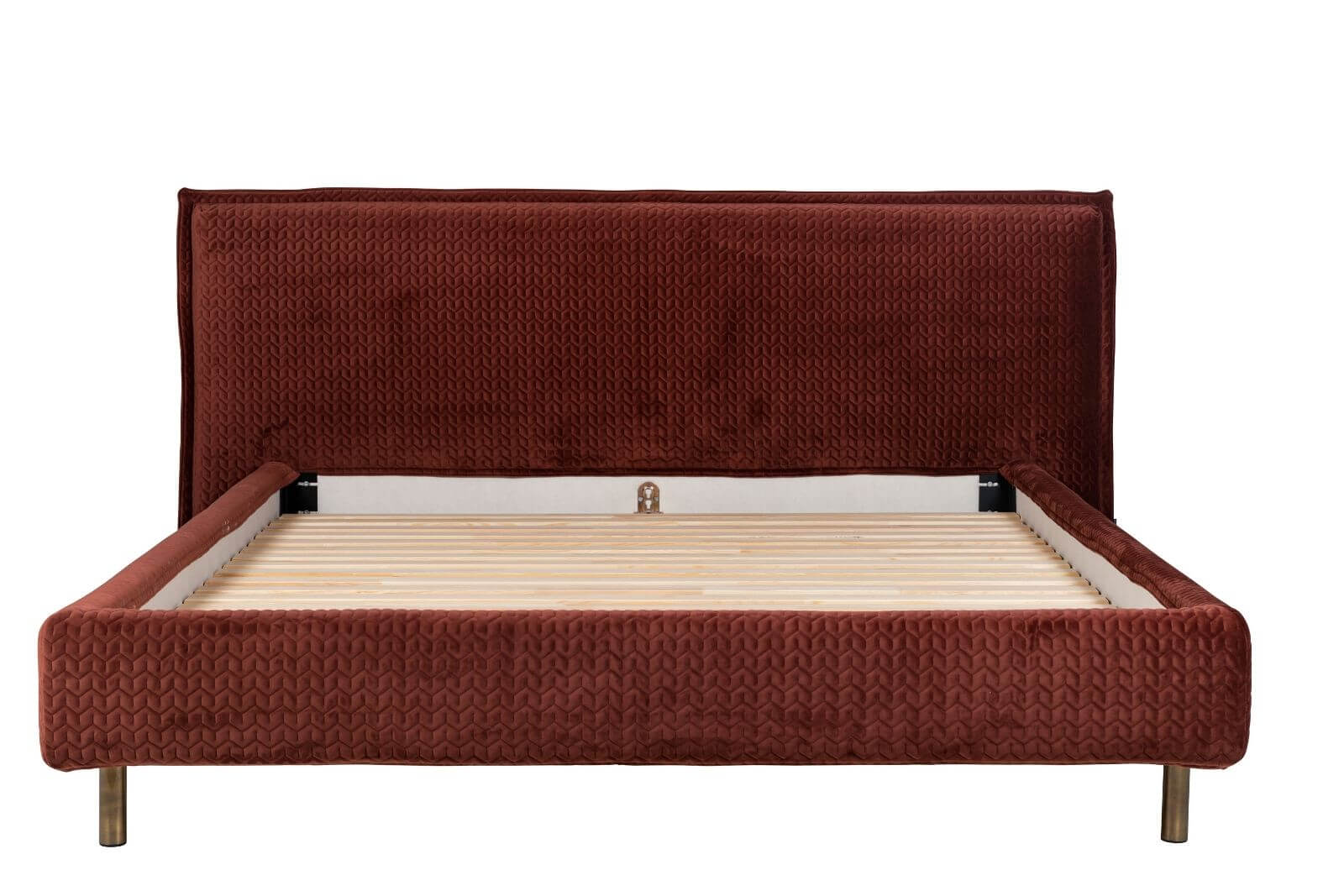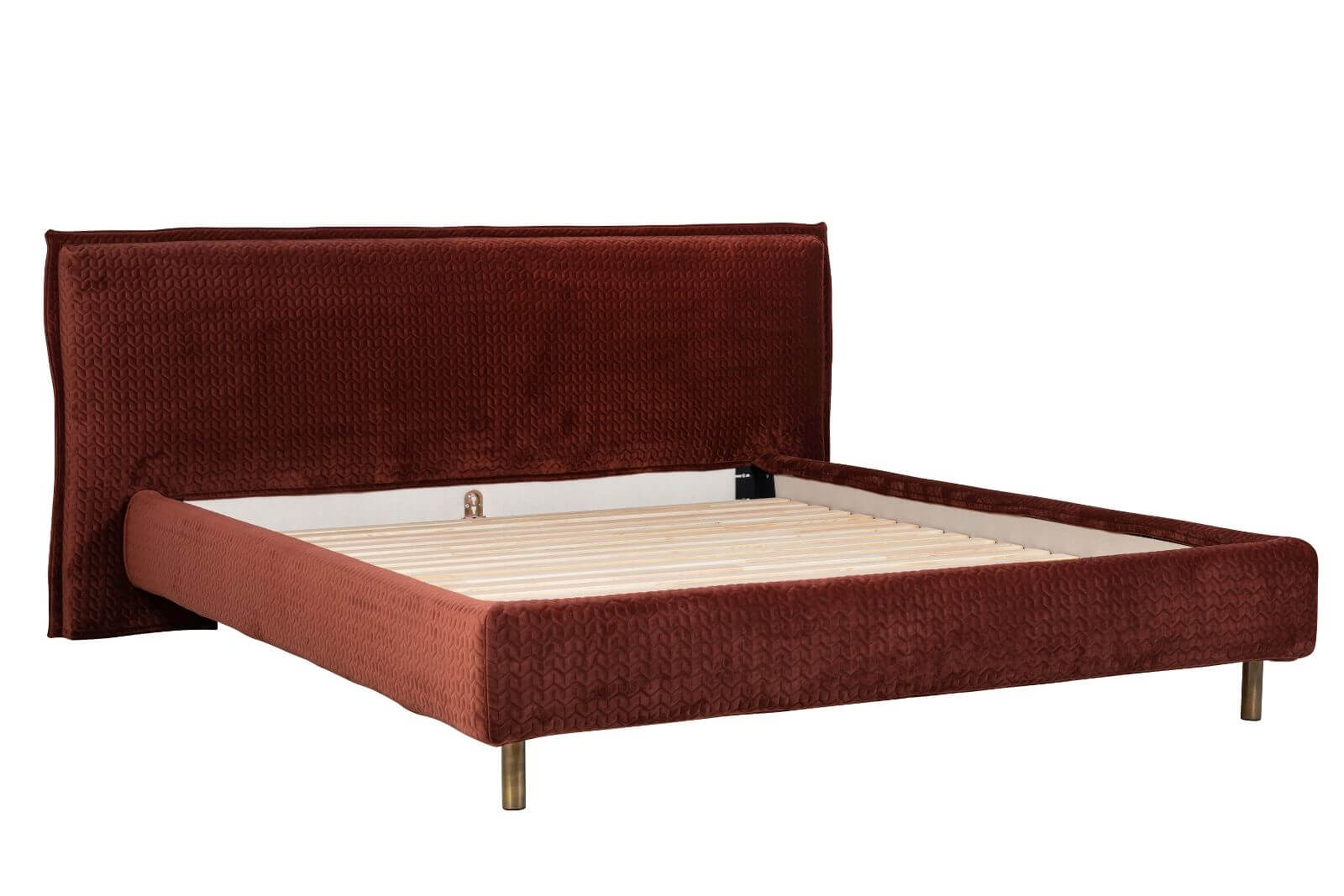 Pieds en finition laiton. Sommier inclus. Matelas non inclus.