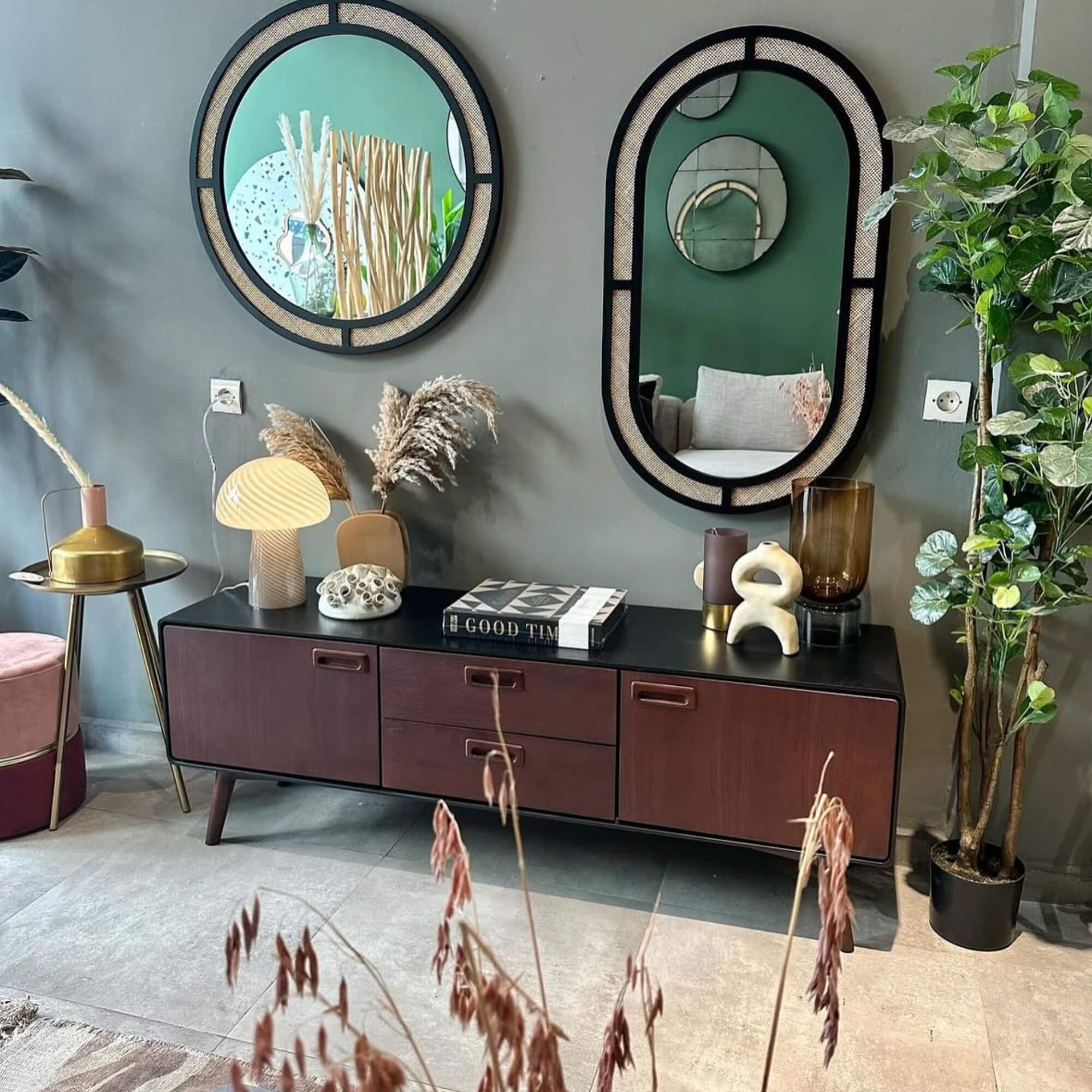 Ce miroir saura vous surprendre par sa composition Bi-matières. Du verre et un beau cannage en rotin pour le sublimer. Le duo parfait pour un miroir qui ne laisse personne indifférent !