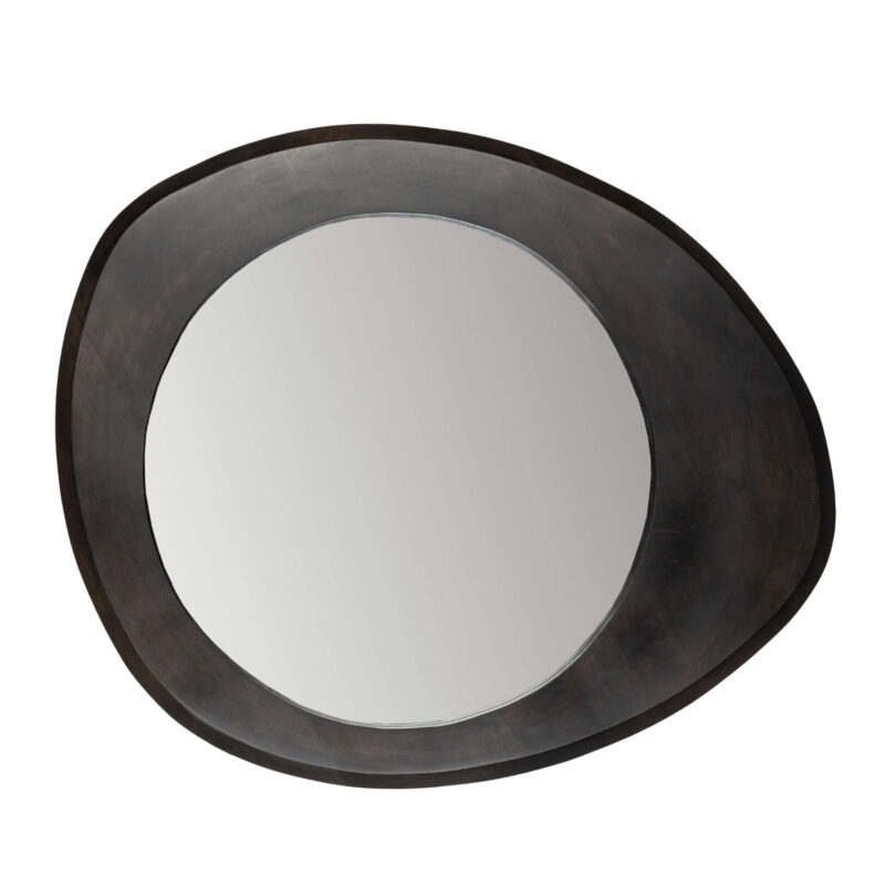 Transformez un mur en pièce maîtresse de votre intérieur avec ce beau miroir en bois de manguier fait main. Avec son apparence particulière, ce miroir mural attire immédiatement le regard. La première chose qui vous frappera est, bien sûr, la forme organique et le large cadre. Le cadre est fabriqué en bois de manguier de haute qualité et fini avec un élégant laquage noir. La surface du cadre n’est pas complètement lisse délibérément et présente de petites imperfections.. Cela lui confère encore plus de caractère avec un aspect fin, parfaitement imparfait. Un look qui remplit la pièce d’une ambiance chaleureuse et apporte une touche robuste.
