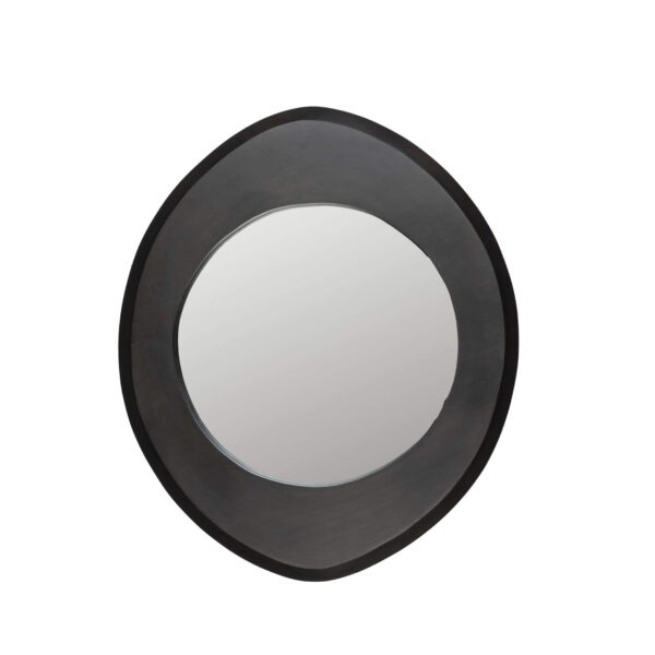 Transformez un mur en pièce maîtresse de votre intérieur avec ce beau miroir en bois de manguier fait main. Avec son apparence particulière, ce miroir mural attire immédiatement le regard. La première chose qui vous frappera est, bien sûr, la forme organique et le large cadre. Le cadre est fabriqué en bois de manguier de haute qualité et fini avec un élégant laquage noir. La surface du cadre n’est pas complètement lisse délibérément et présente de petites imperfections.. Cela lui confère encore plus de caractère avec un aspect fin, parfaitement imparfait. Un look qui remplit la pièce d’une ambiance chaleureuse et apporte une touche robuste.