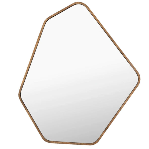 Avec des accessoires iconiques comme le miroir Bryn, transformez votre intérieur en un espace dont vous serez fier. Ce miroir asymétrique se distingue immédiatement par sa forme unique. Ses six coins créent un effet ludique, tandis que son cadre en bois apporte une ambiance chaleureuse à la pièce. La finition mate met en valeur la teinte noyer du bois, lui conférant un charme particulier. Le verre facetté avec ses bords inclinés complète le design et évoque le style des intérieurs d’autrefois.