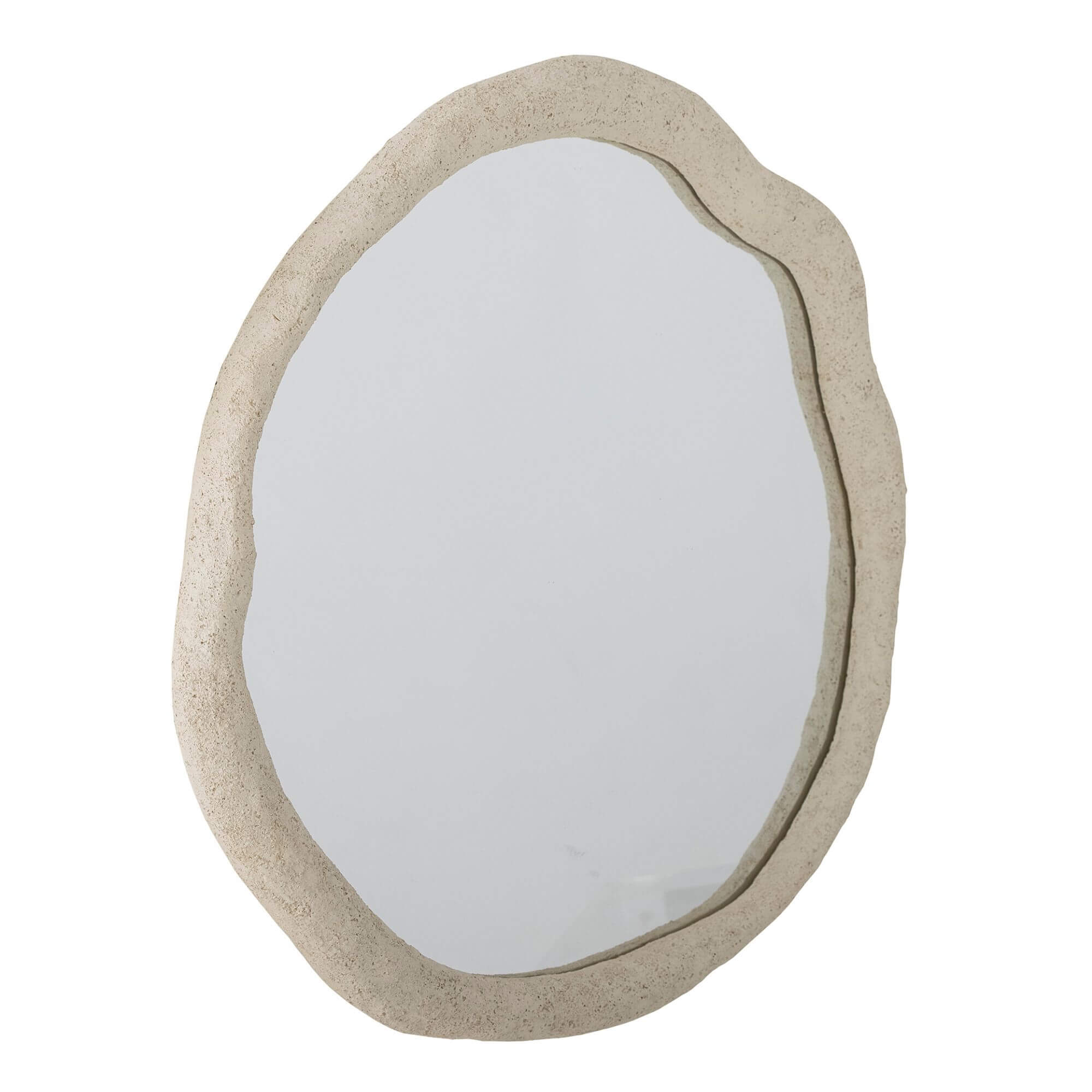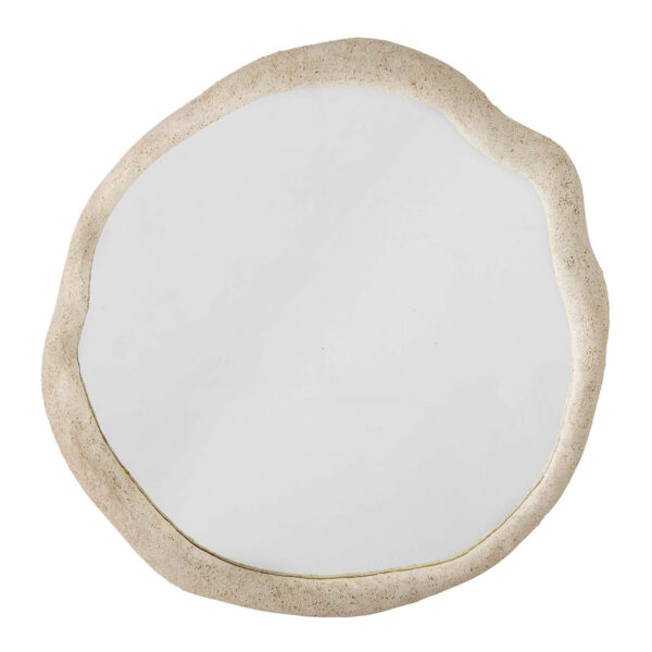 Le Miroir mural Cillia se prête aussi bien à un usage fonctionnel dans la chambre qu’à une touche décorative dans le salon ou l’entrée. Son cadre en polyrésine présente une texture brute, et sa forme organique unique confère une allure moderne et élégante à tout intérieur.