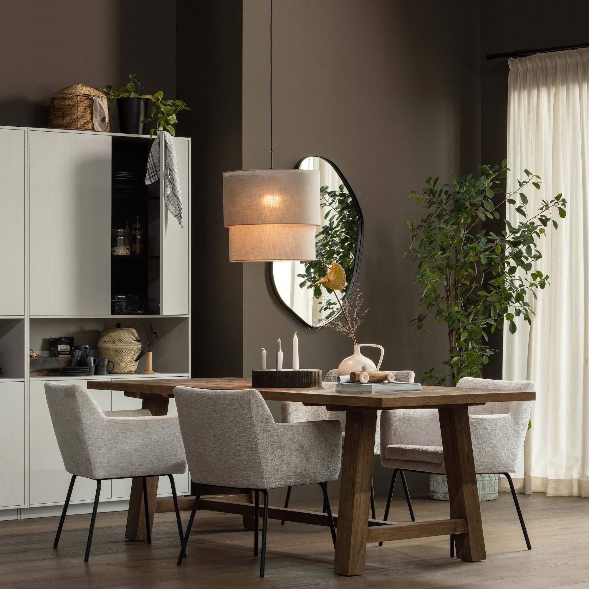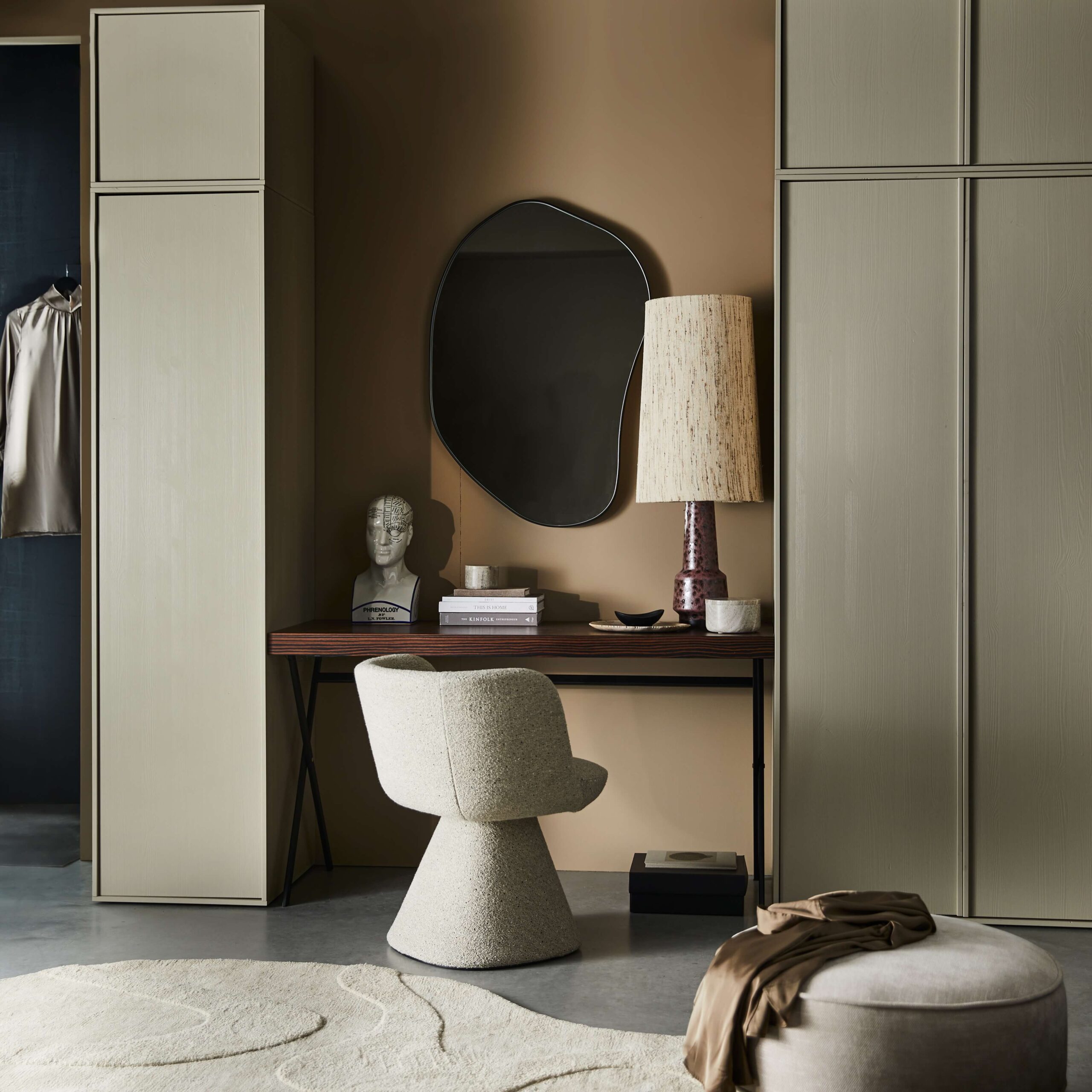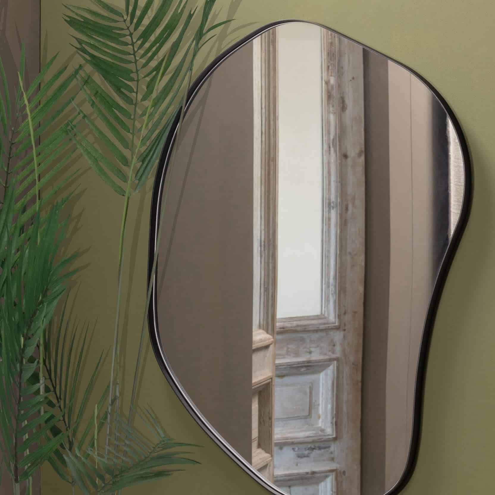Le miroir Romee incarne l’élégance et la fonctionnalité avec son design organique et son cadre métallique noir mat. Sa taille généreuse de H 100 cm x L 70 cm en fait un ajout remarquable à tout espace de vie, doublant facilement l’espace optique et apportant une touche de modernité.