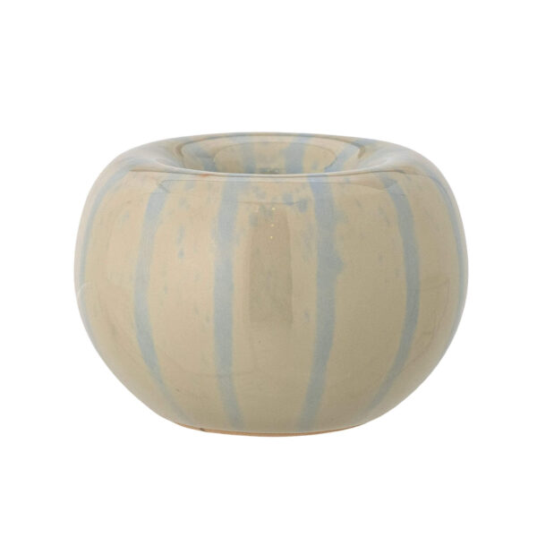 Le photophore Agate se distingue par sa forme ronde et sa glaçure jaune clair rehaussée de rayures bleues peintes à la main. Ce photophore est idéal pour diffuser une lumière douce et apporter une touche d’originalité à votre intérieur. Chaque pièce étant peinte à la main, de légères variations de couleur et de motifs ajoutent une note d’authenticité et d’unicité.