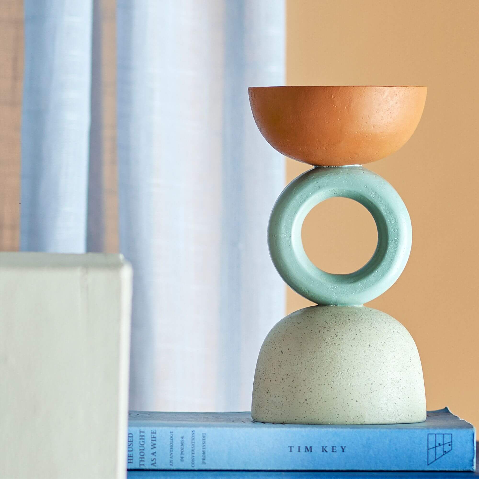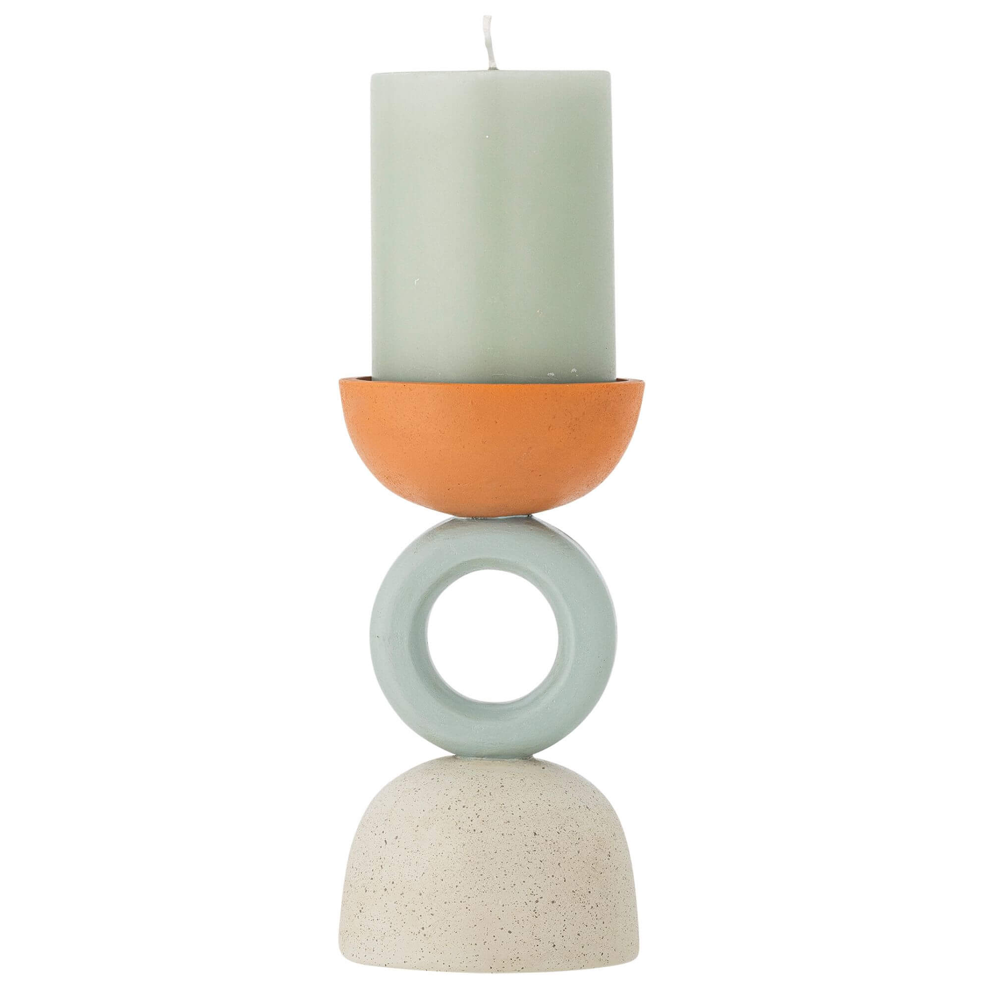Le bougeoir Loretta se distingue par son jeu harmonieux de formes graphiques, qui lui confère une expression artistique tout en restant épurée. Conçu en polyrésine et orné de superbes teintes naturelles, bleu et orange, ce bougeoir apporte une touche de charme et de modernité à votre intérieur.