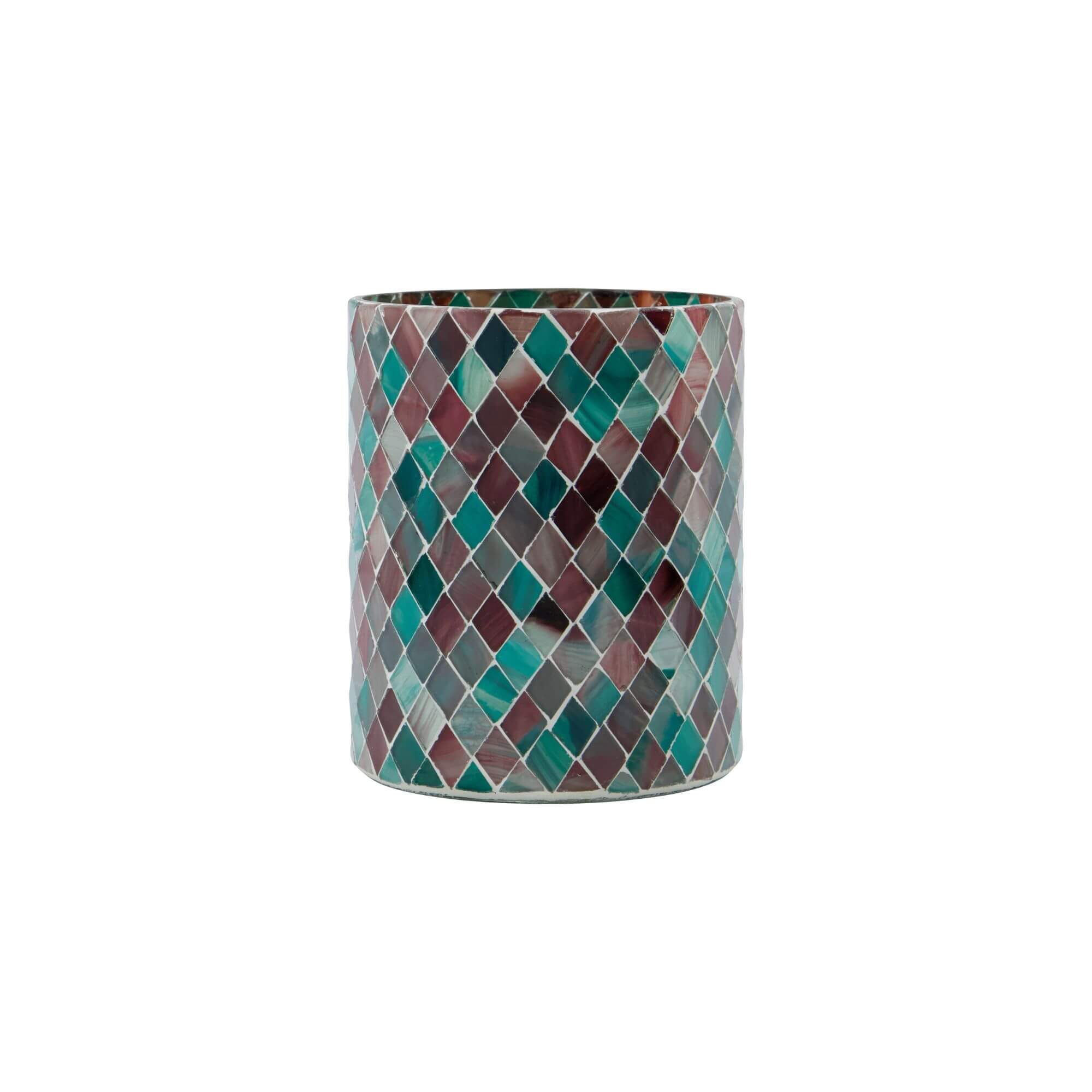 Photophore Teela – Mosaïque Vert et Marron – Ø 11 x H 13 cm