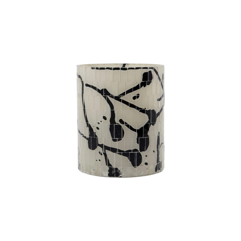 Ajoutez une touche d’élégance contemporaine à votre décoration intérieure avec le photophore Vana noir small de House Doctor. Ce petit bougeoir en mosaïque, avec son motif noir et blanc, est un véritable chef-d’œuvre artisanal. Chaque pièce est unique et sa conception frappante apporte un contraste saisissant aux autres matériaux et textures de votre décoration. Utilisez-le pour sublimer un décor minimaliste, laissant ainsi le magnifique motif en mosaïque se démarquer, ou mélangez-le avec des bougeoirs en métal pour une composition personnalisée sur votre table basse ou votre table à dîner. Le design contemporain du bougeoir Vana est idéal pour créer une ambiance chaleureuse et accueillante dans votre salon.