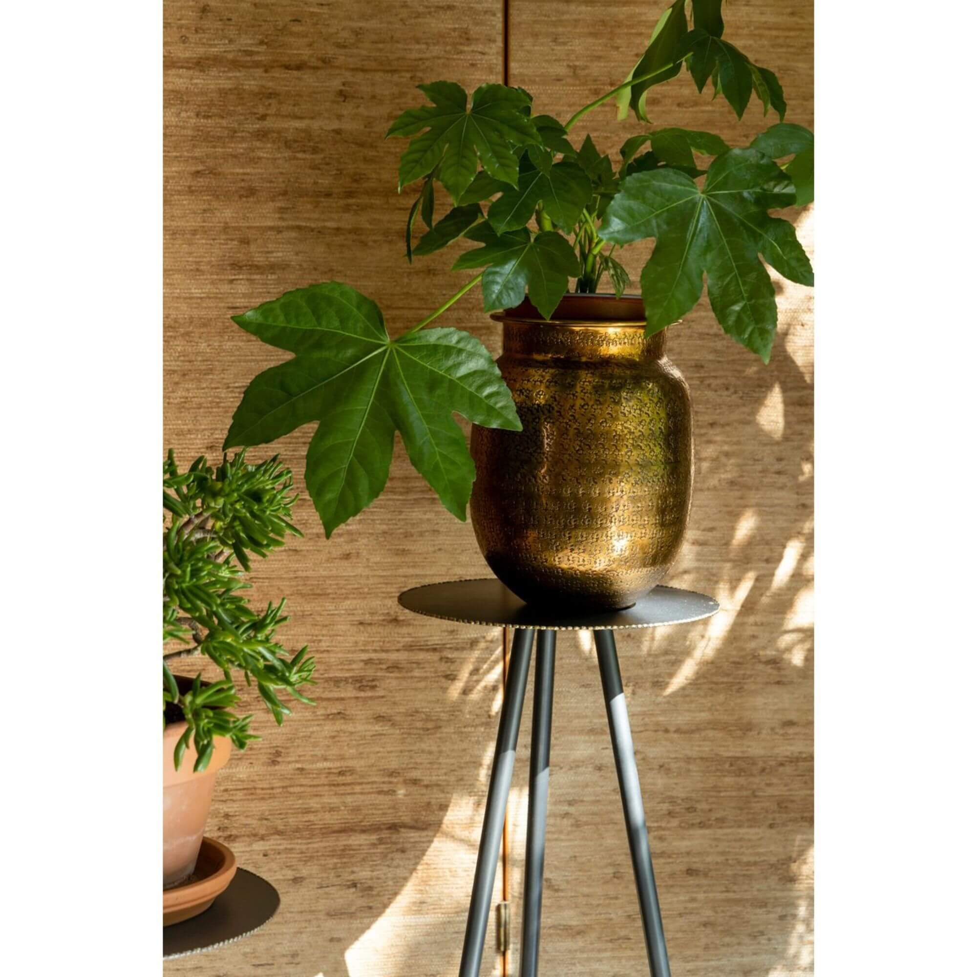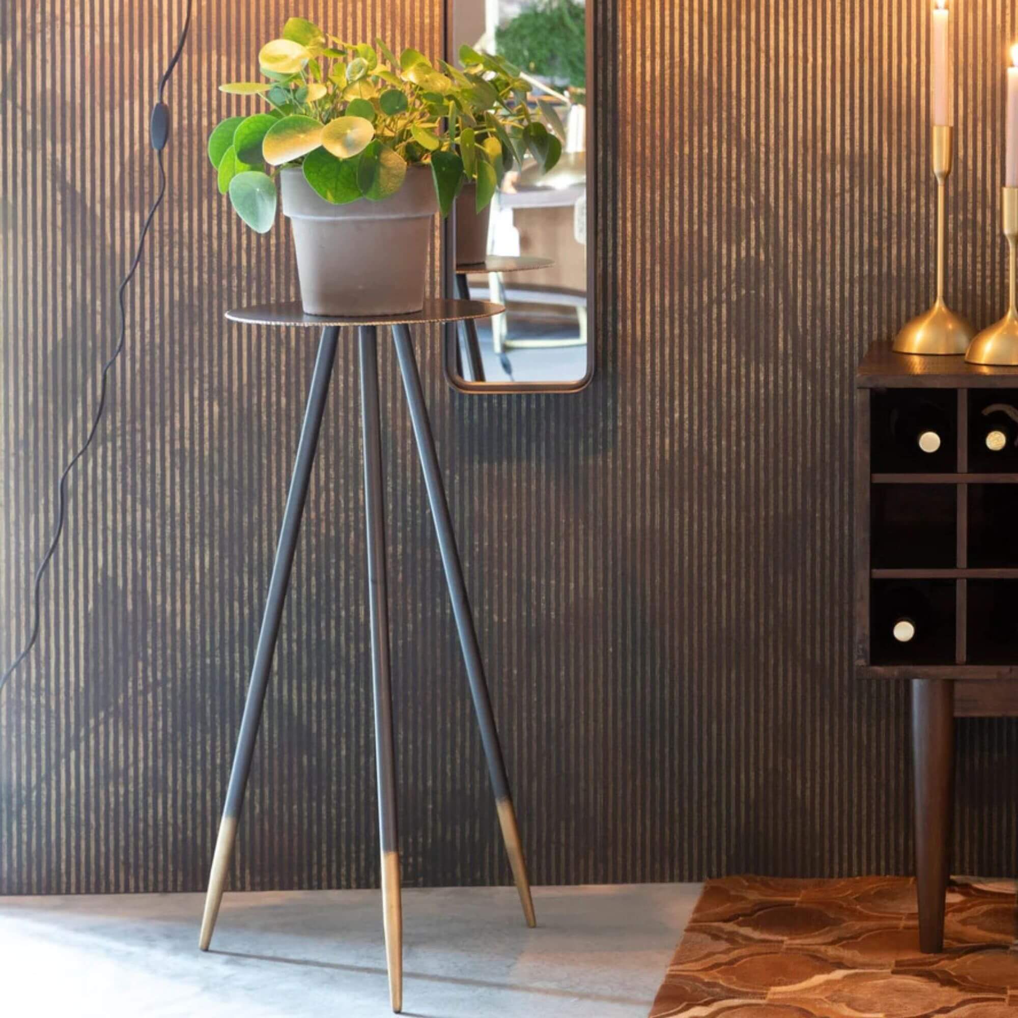 La combinaison parfaite du style élégant avec un look industriel. Le dessus de table en métal a été fini avec un bord exposant une belle couleur d’or et pour couronner le tout un effet d’ombre a été ajouté aux piètement passant du gris anthracite au laiton, une addition si subtile mais renversante.