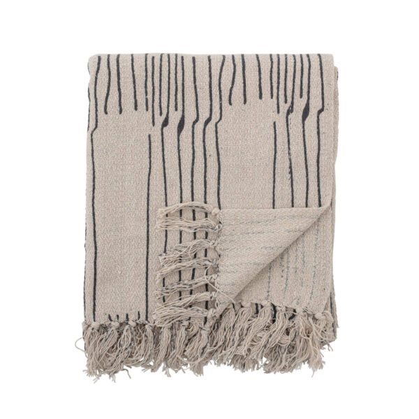 Ce joli plaid constitue l’ajout parfait pour votre espace de détente. Fabriqué à partir de coton recyclé, il offre une texture douce au toucher. Ses motifs comprennent des lignes droites sur un fond naturel, et il est agrémenté de franges aux extrémités.
