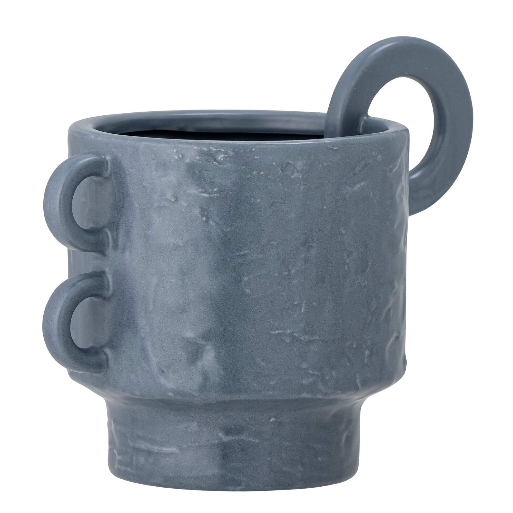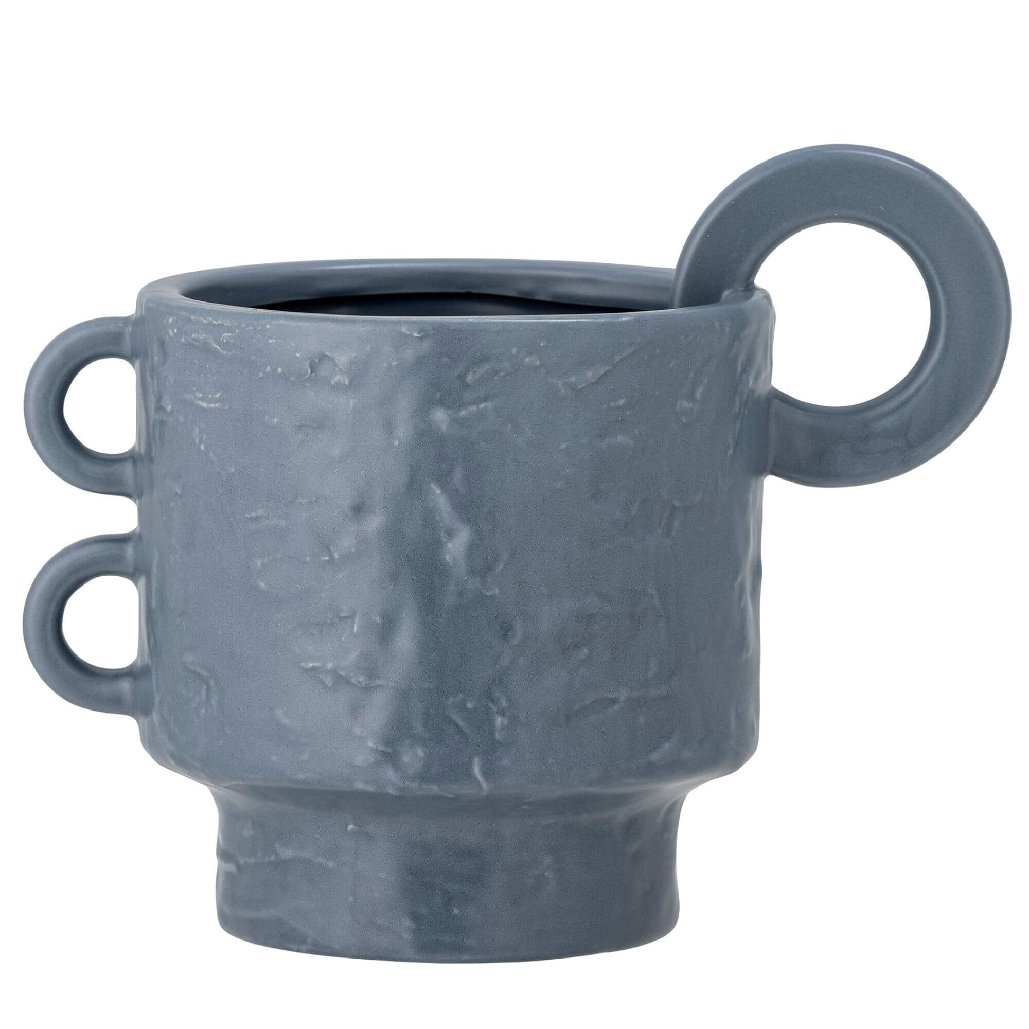Ce joli Pot de fleurs est fabriqué en grès d’un élégant ton de bleu clair. Son design ludique est accentué par des poignées de tailles variées. Ajoutez-y la plante de votre choix pour une touche de verdure. Comme il est émaillé à la main selon des techniques artisanales, des variations peuvent survenir, ce qui lui confère un caractère unique.