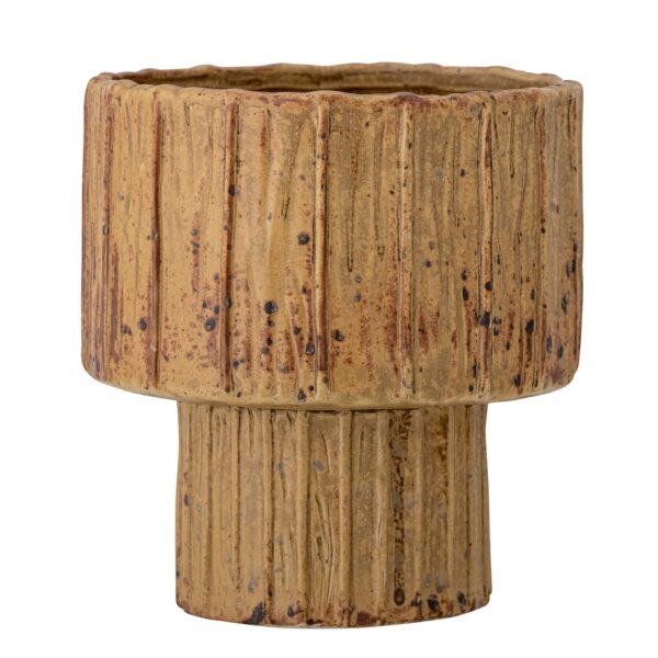 Le Pot de fleurs Elitta est en grès de couleur naturelle marron avec un look 3D. Parfait sur le rebord de la fenêtre pour une petite plante verte de votre choix.