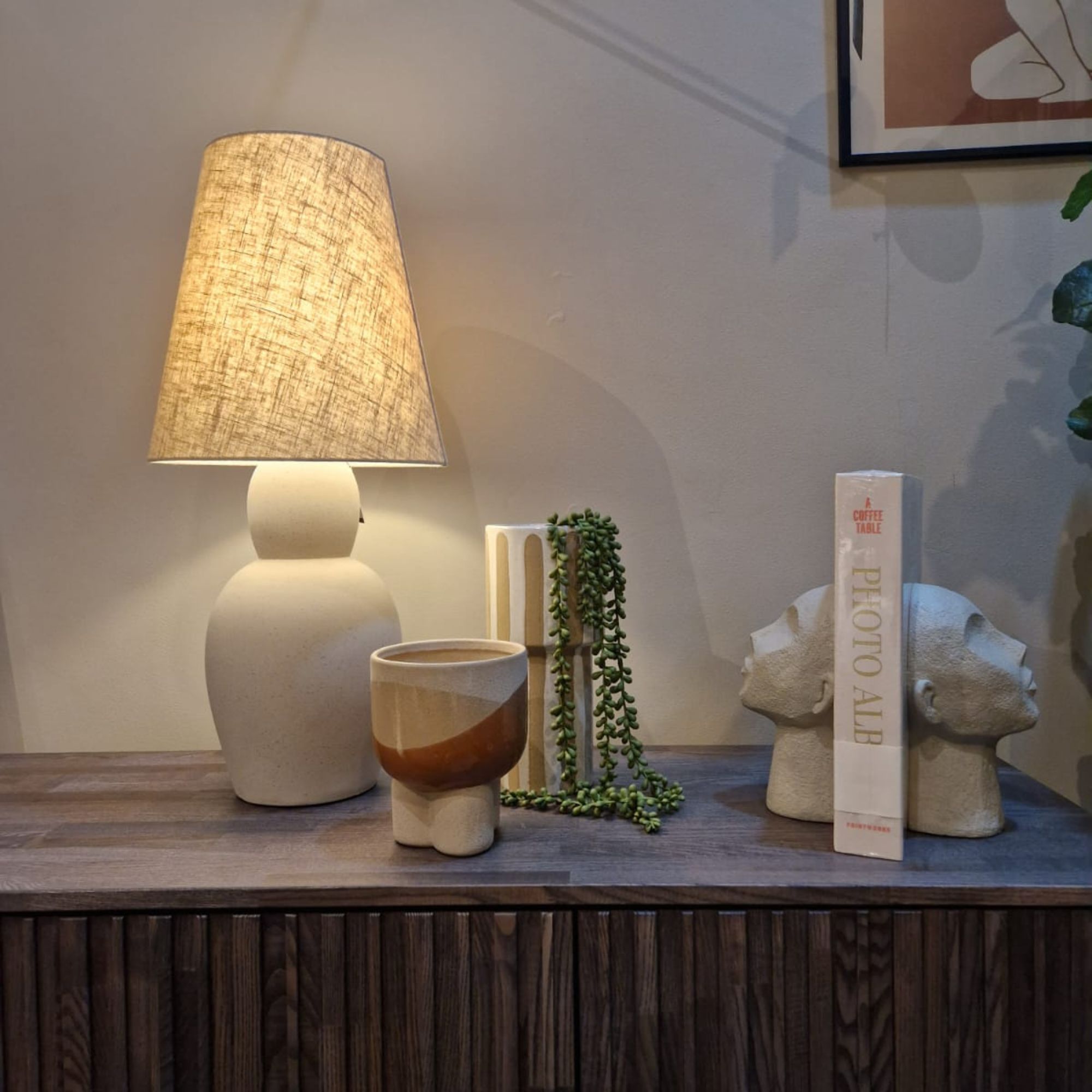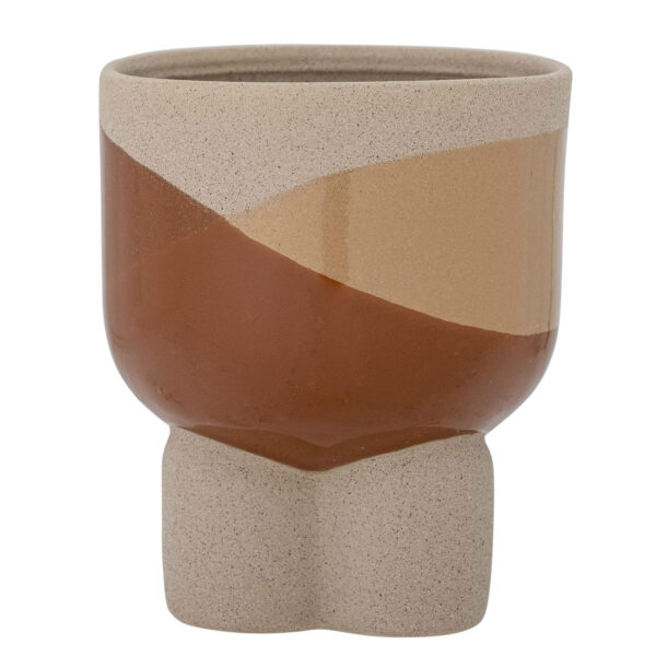Le pot de fleurs Iness est un récipient brut et distinctif en grès mat. Sa surface texturée est ornée d’un motif graphique dans des tons de taupe et terracota, apportant une touche d’originalité. Ce pot se marie parfaitement avec une petite plante de votre choix et s’intègre harmonieusement dans votre espace préféré.