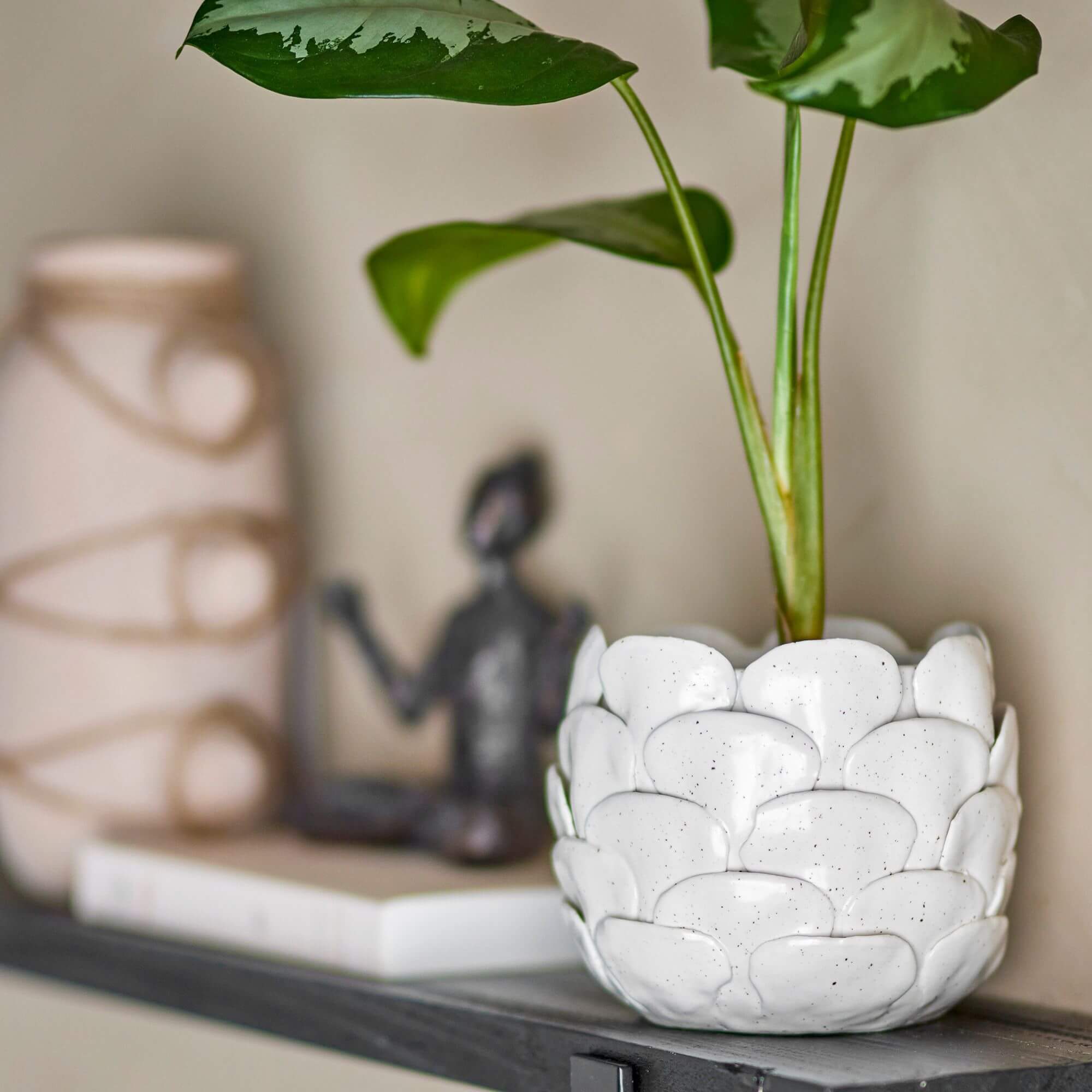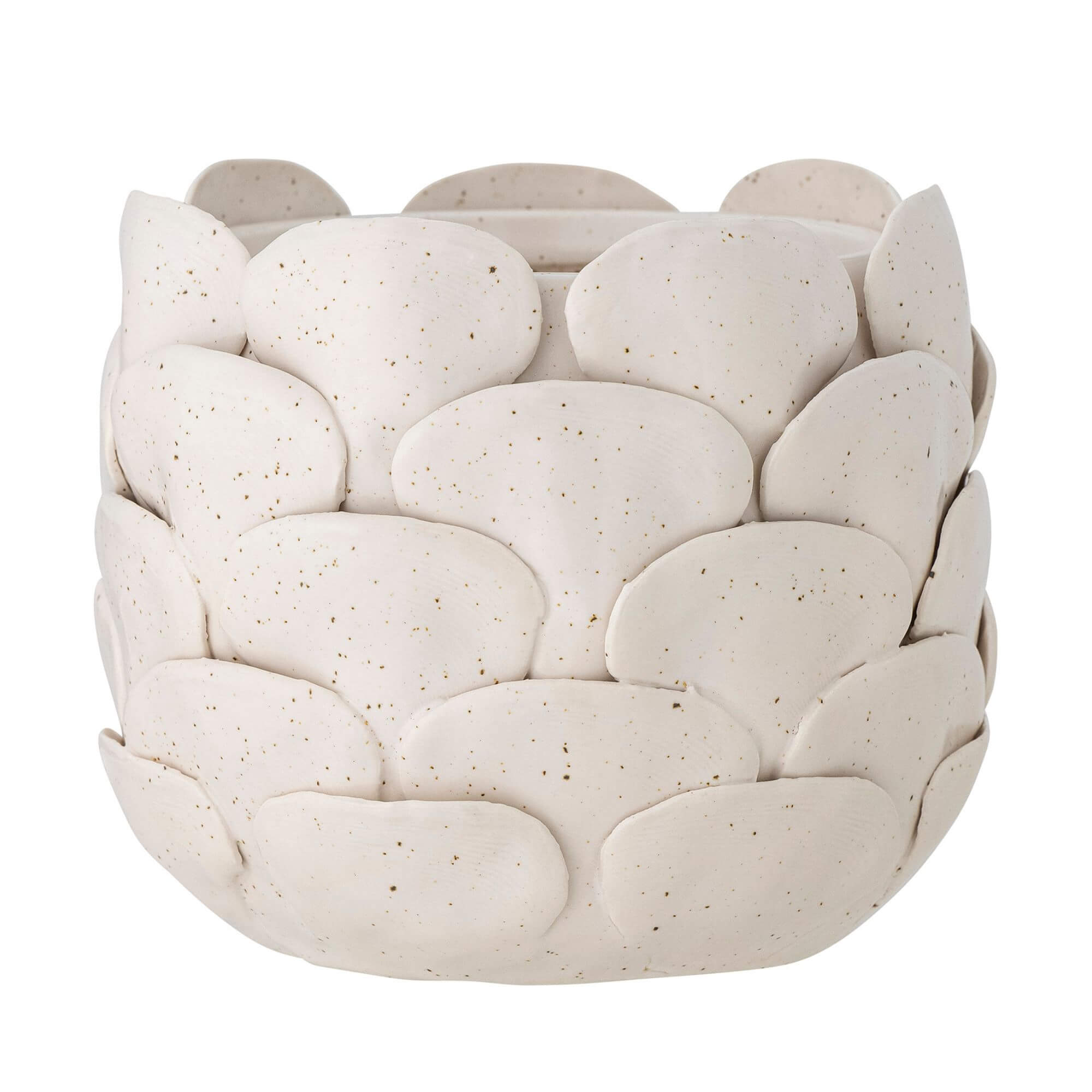 Le pot de fleurs Madda est conçu en grès avec un design à effet de couches et une teinte claire subtilement mouchetée. Son allure naturelle et son style organique s’intègrent parfaitement dans tous les décors.