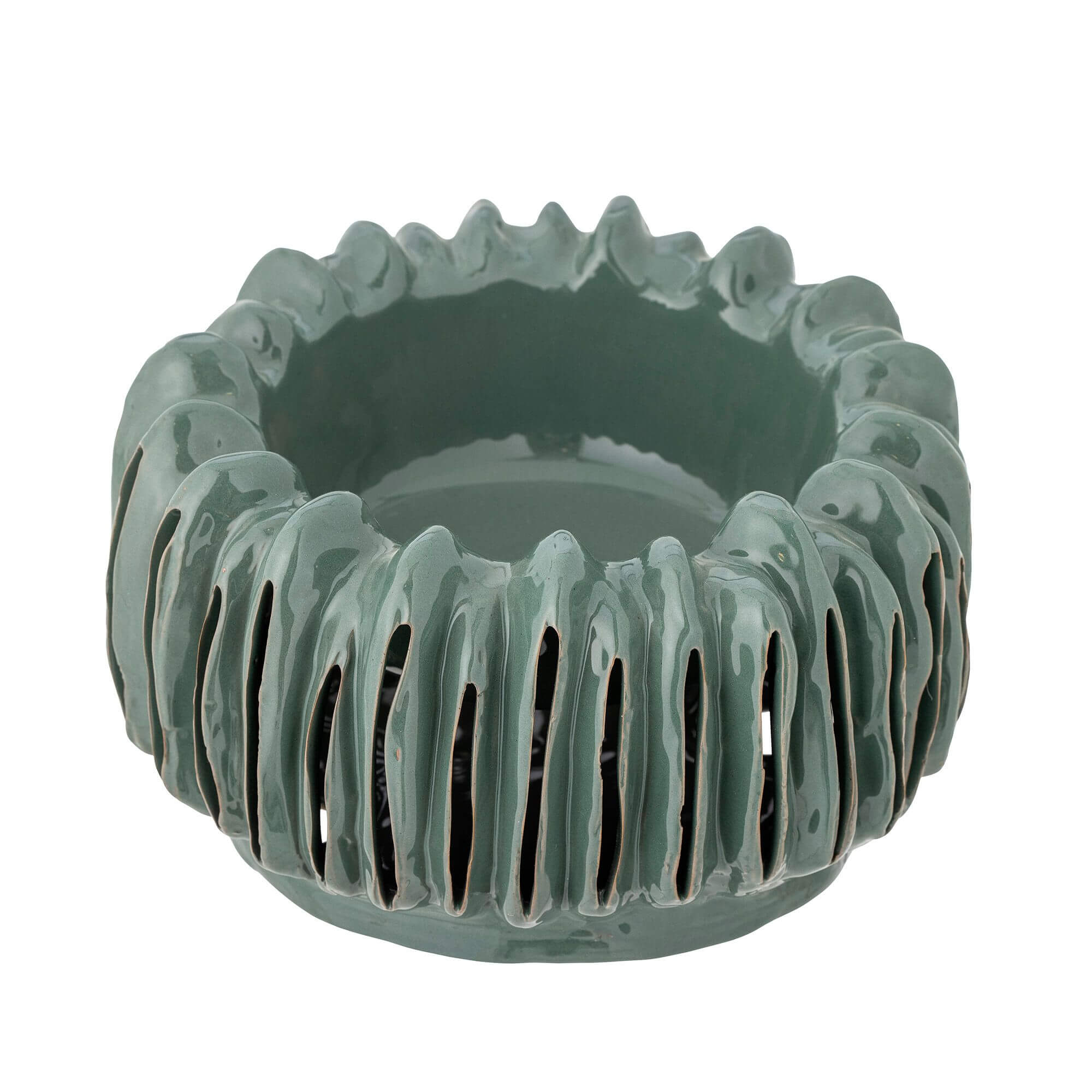 Le Pot de fleurs déco est réalisé en grès d’une superbe teinte verte. Ce pot de fleurs unique présente des fentes sculptées à la main, en faisant un choix parfait pour votre plante favorite. Chaque pièce est unique, étant donné qu’elle est fabriquée à la main.