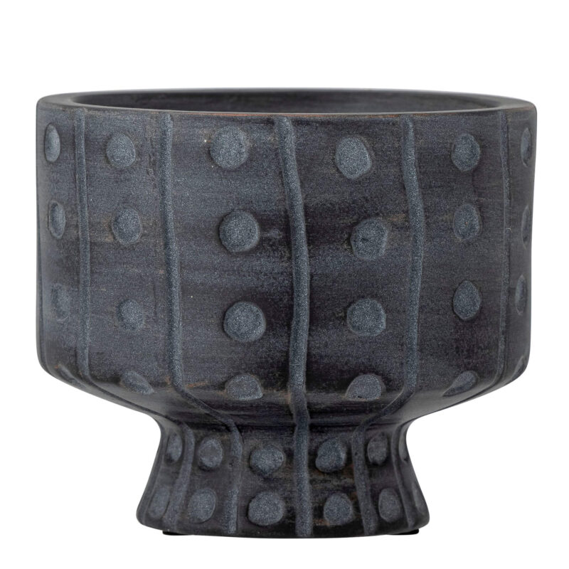 Le Pot de fleurs Rane est en céramique avec une surface mate moderne. Ce Pot de fleurs est orné d’un ravissant motif de points gravés suivant un tracé de bas en haut. Sa couleur gris foncé contraste avec n’importe quelles fleurs ou herbes que vous y plantez.