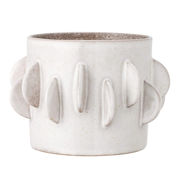 Le Pot de fleurs Roza est fabriqué en grès avec une glaçure réactive d’un ton clair et apaisant. Sa silhouette sculpturale fait de lui une pièce décorative à part entière, idéale pour accueillir une petite plante verte qui mettra en valeur son style unique.