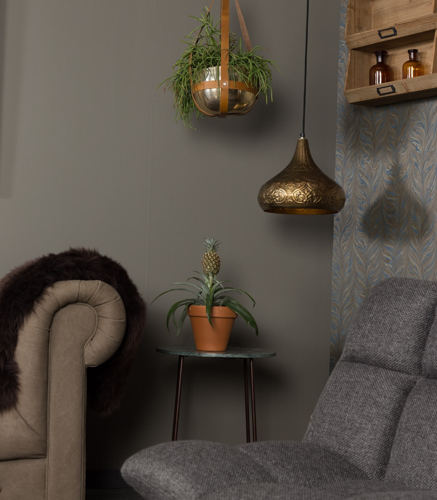 Pot suspendu Oasis – Cuir/laiton