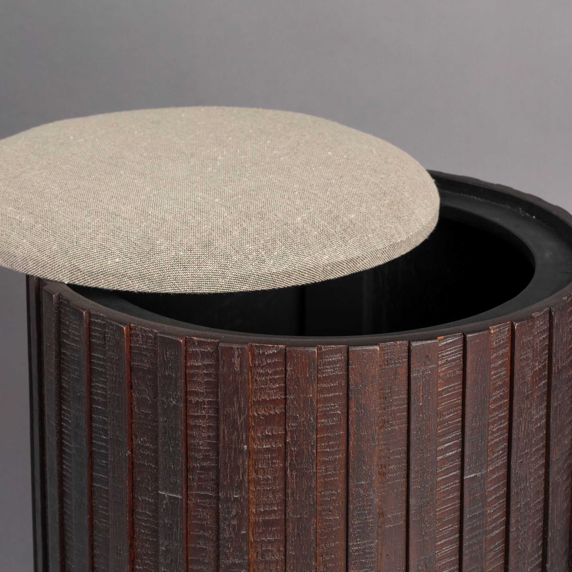 Confectionné en teck recyclé avec une chaleureuse teinte noyer et une finition patinée, ce pouf séduit par son allure authentique. Son motif rainuré lui confère un charme vintage subtil, parfait pour les intérieurs à l’esprit chaleureux.