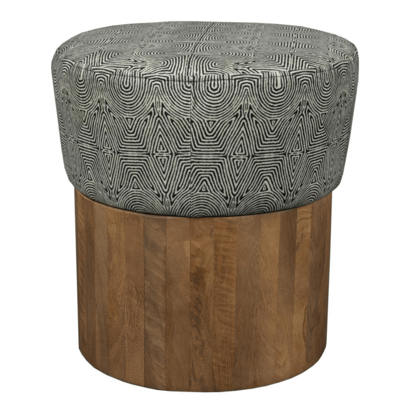 Avec ce joli pouf, vous transformez instantanément votre intérieur en un cocon chaleureux. Sa base en bois de manguier, injecte des tons profonds et cosy qui contrastent magnifiquement avec son assise graphique, inspirée d’un labyrinthe des années 70 (parfait pour tester vos compétences en orientation). En plus, le tissu ultra doux invite vos pieds fatigués à s’y poser après une longue journée, ou devient un siège supplémentaire pour vos invités (si vous êtes vraiment gentil, bien sûr). Bref, un pouf qui réchauffe la pièce… et l’ambiance !