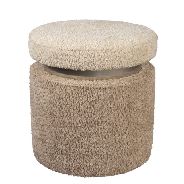 Ce modèle compact a une forme ronde épurée. Sa particularité ? L’assise est légèrement surélevée, créant un espace en retrait avant le bloc de la base. Ce détail esthétique apporte une touche de légèreté à l’ensemble, tout en restant très sobre.