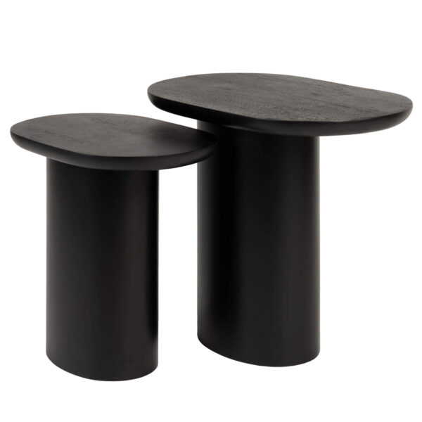 Avec des piètements robustes en métal et des plateaux en manguier, ces tables arborent un look noir total pour une élégance parfaite. Leur forme ovale et leur stabilité en font des bouts de canapé idéaux, à utiliser ensemble ou séparément.