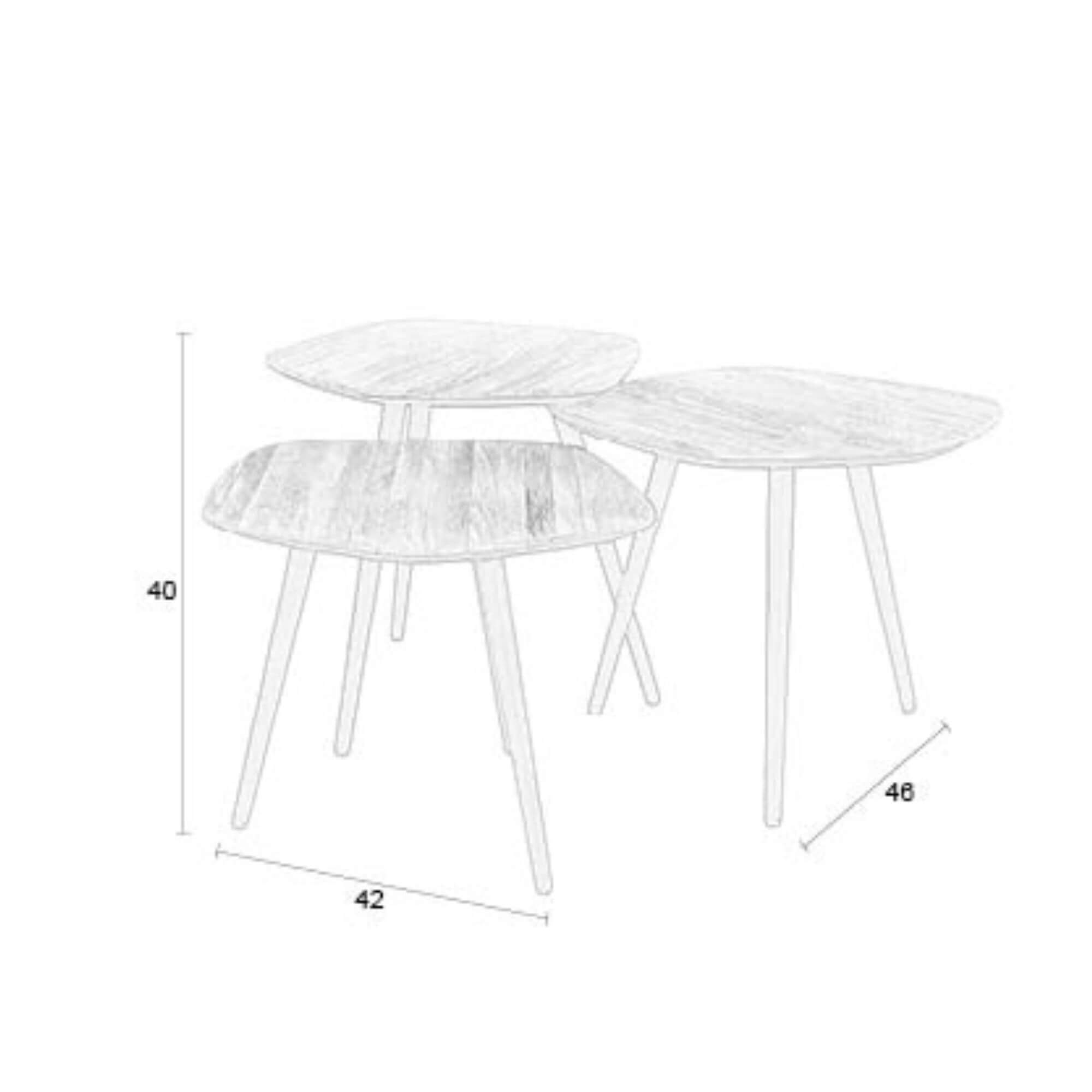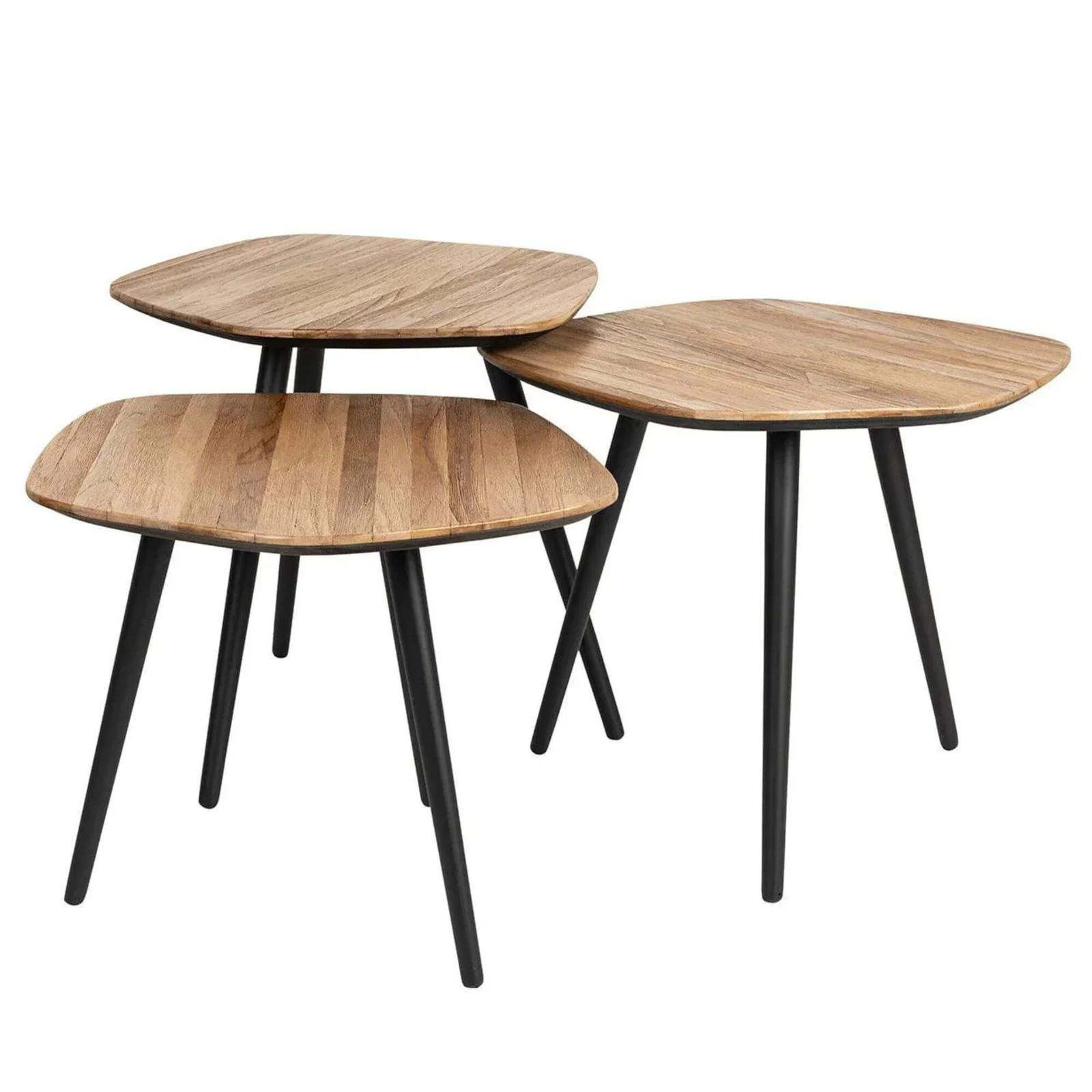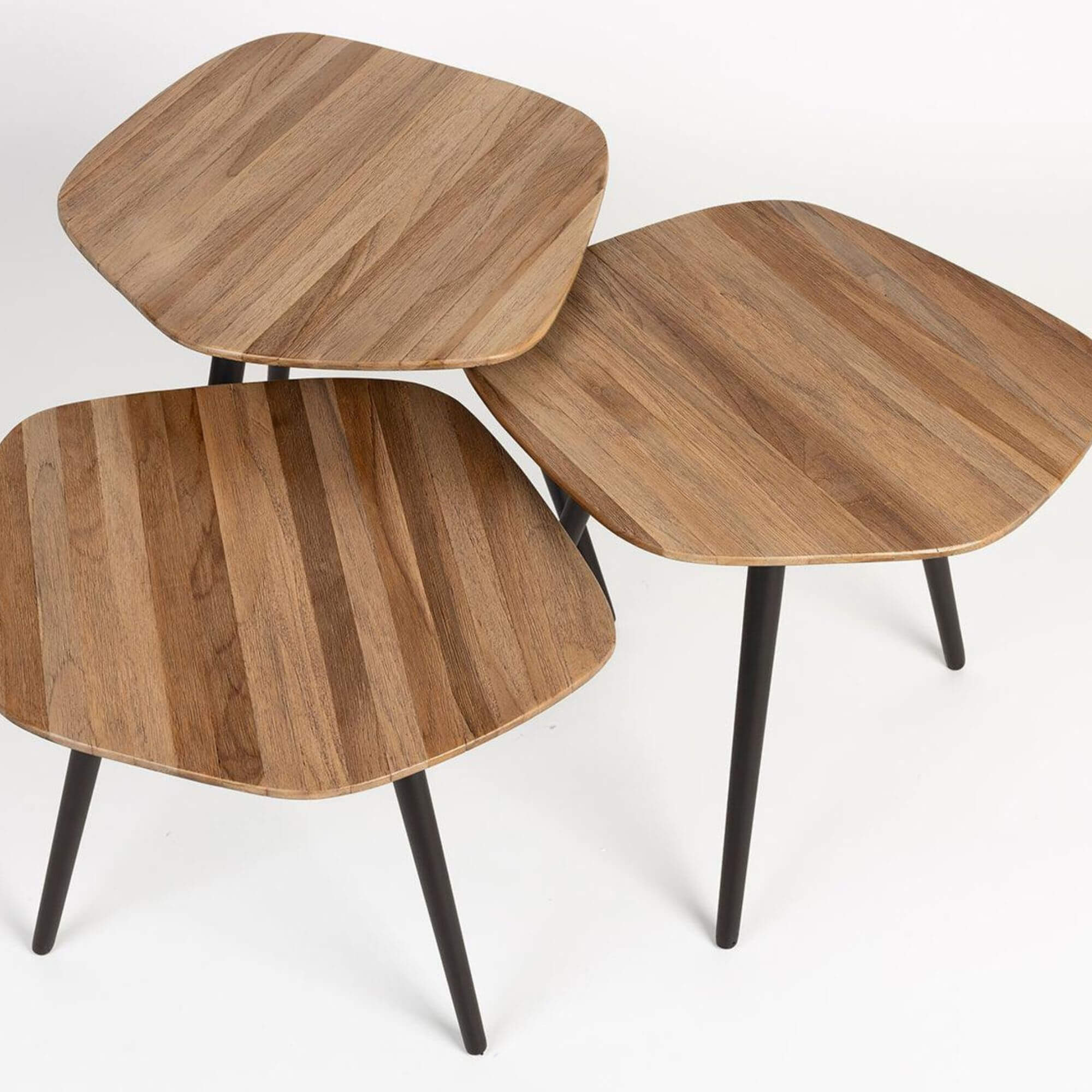 Transformez votre espace de vie avec l’ensemble polyvalent de 3 tables basses Cuties ! Fabriquées avec des plateaux en placage de teck recyclé finis en laque naturelle, ces tables respectueuses de l’environnement évoquent une sensation distincte de chaleur et de nostalgie. Chaque table est soutenue par trois élégants pieds en fer noir et présente des plateaux pentagonaux aux bords arrondis. Leur design adaptable vous permet de les utiliser individuellement ou en tant qu’ensemble, les rendant ainsi une addition dynamique à votre décoration intérieure. Créez une disposition harmonieuse et ajustez-les selon vos besoins, tout en conservant une esthétique élégante et moderne.