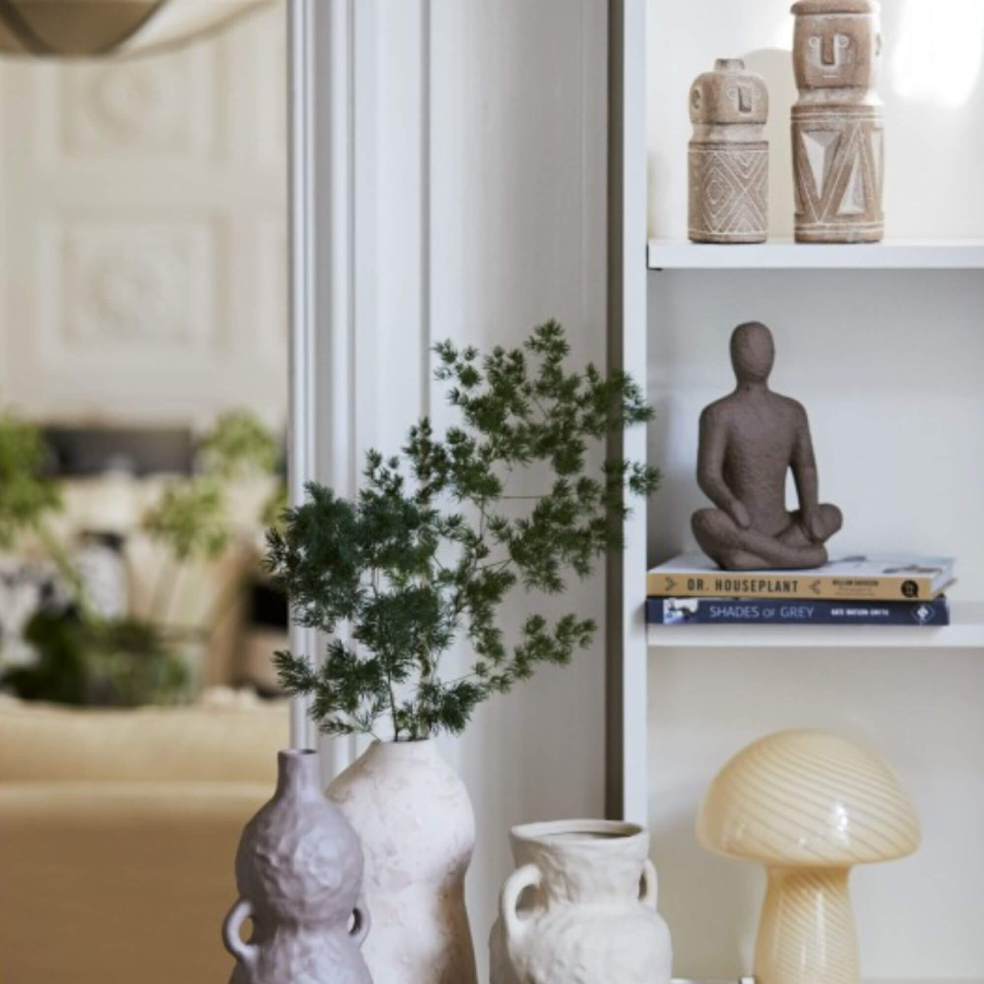 Placez la figurine sur le rebord de la fenêtre ou dans une bibliothèque, où son personnage se démarquera. La figurine est en ciment..