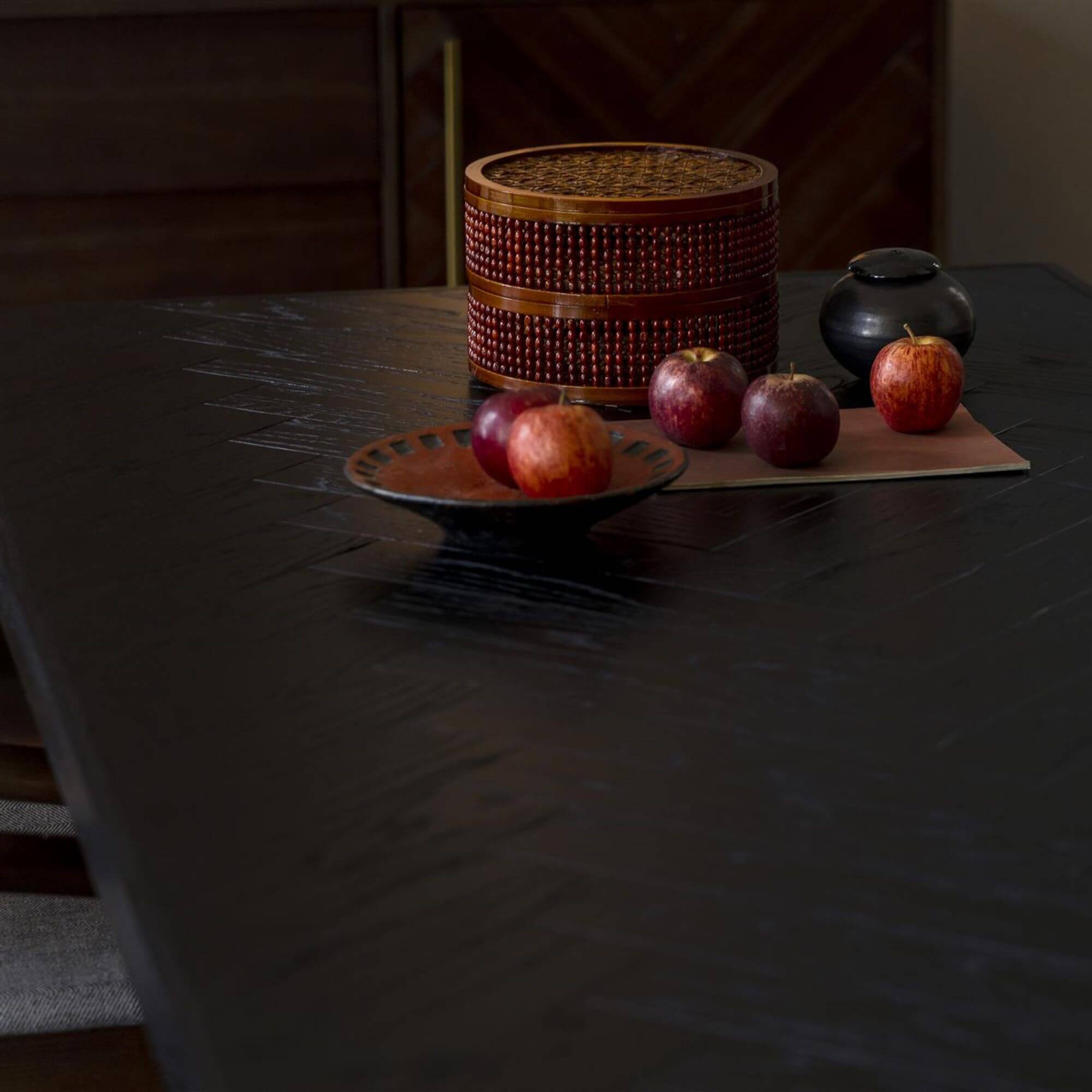 Aussi élégante qu’inattendue, cette table en bois plaqué acacia noir ne fait pas dans la discrétion – et tant mieux !