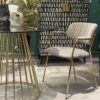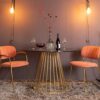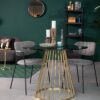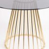 Le plateau rond en verre fumé trempé crée une ambiance raffinée tout en laissant transparaître le superbe piètement en acier galvanisé doré. Les lignes géométriques et graphiques de ce piètement ajoutent une touche contemporaine à son esthétique classique.