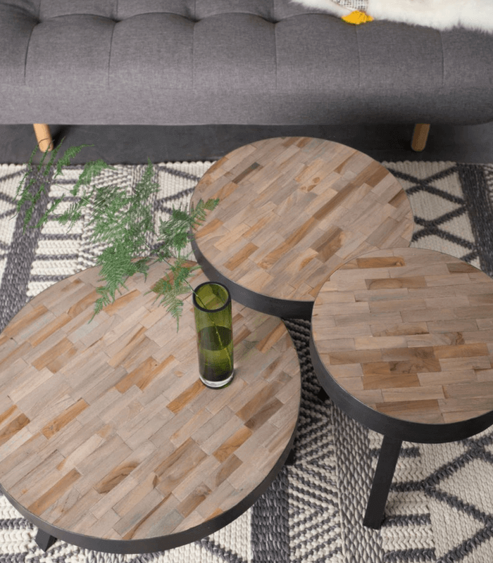 Ajoutez une touche d’authenticité à votre espace de vie avec les tables basses Suri en teck recyclé. Fabriquées à partir de matériaux bruts comme le teck et l’acier, ces tables allient charme rustique et élégance contemporaine.