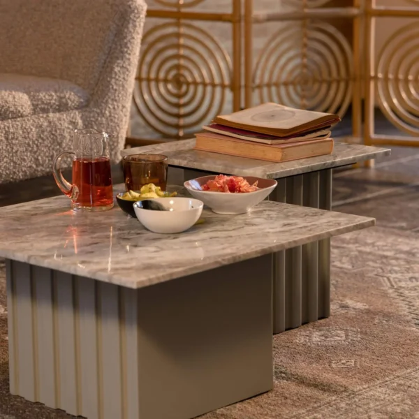 Avec la table Clayton, transformez immédiatement votre coin salon en un espace chaleureux où il fait bon rentrer chez soi.. un endroit pour réchauffer votre âme ! La combinaison unique des matériaux donne à cette table un look caractéristique. Le plateau est en véritable marbre et se marie parfaitement avec la teinte chaude du piètement métallique élégant. Bien que son apparence rappelle celle d’un meuble vintage, cette table s’intègre parfaitement dans un intérieur contemporain. Un ajout remarquable au salon, offrant la surface idéale pour une tasse de café ou de thé bien chaude.