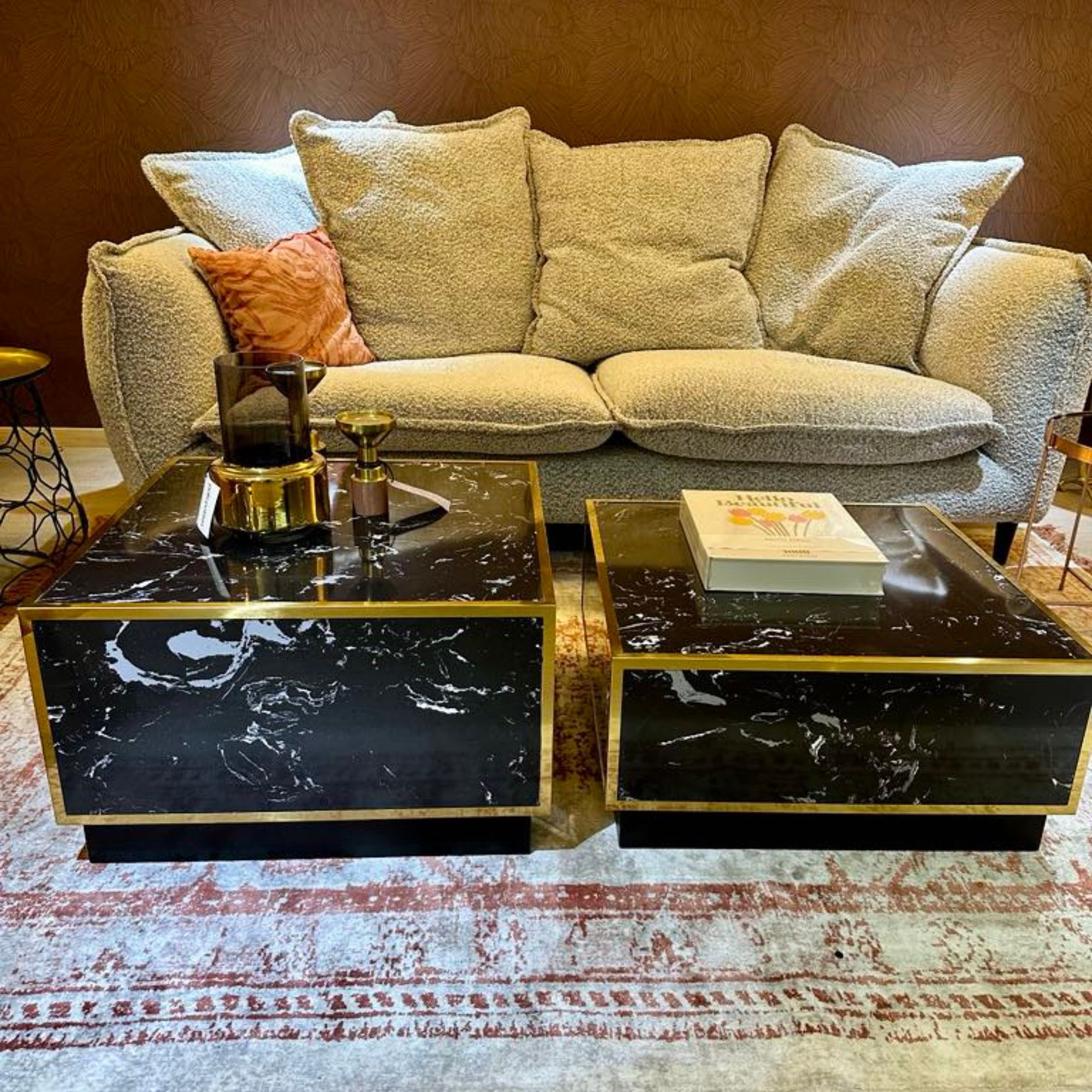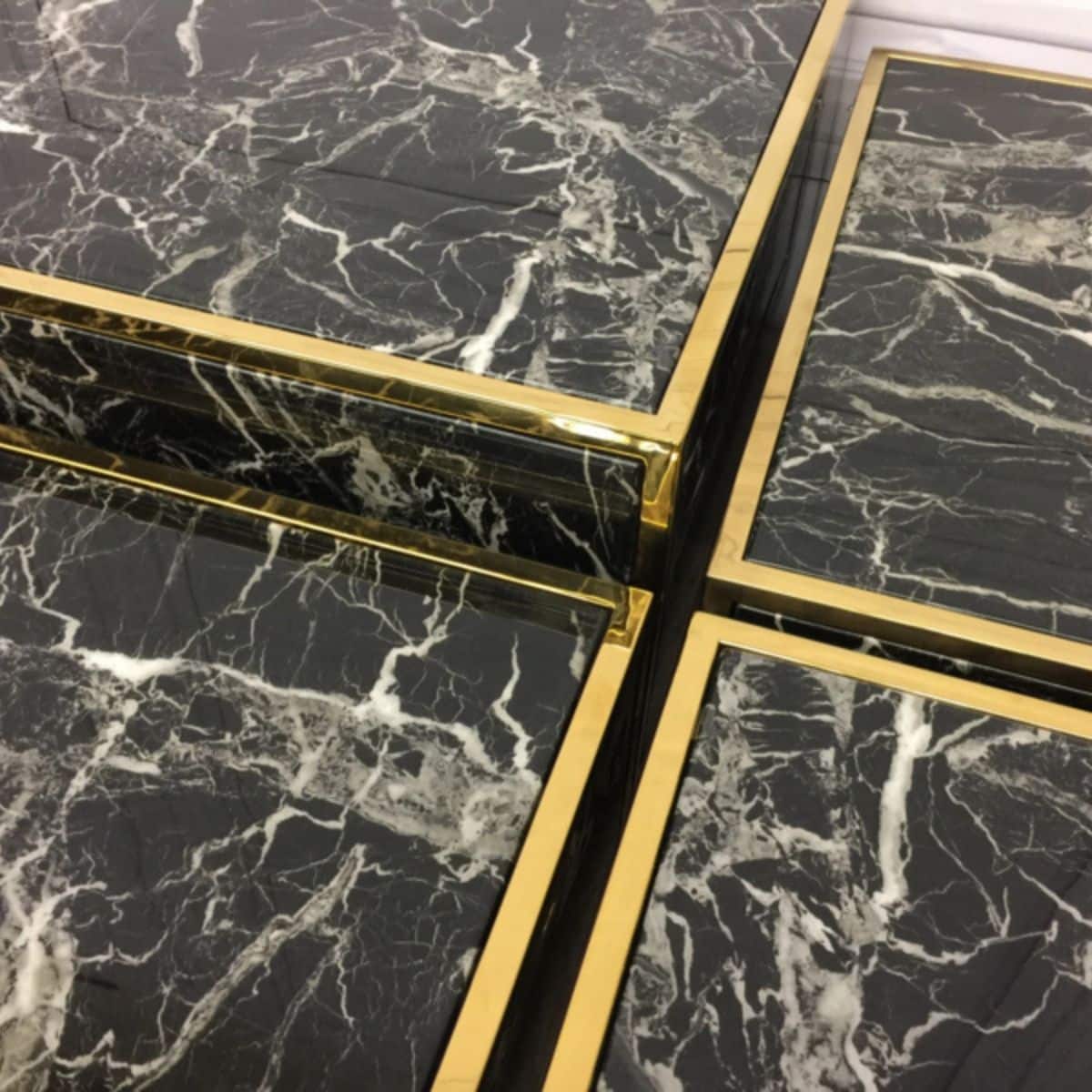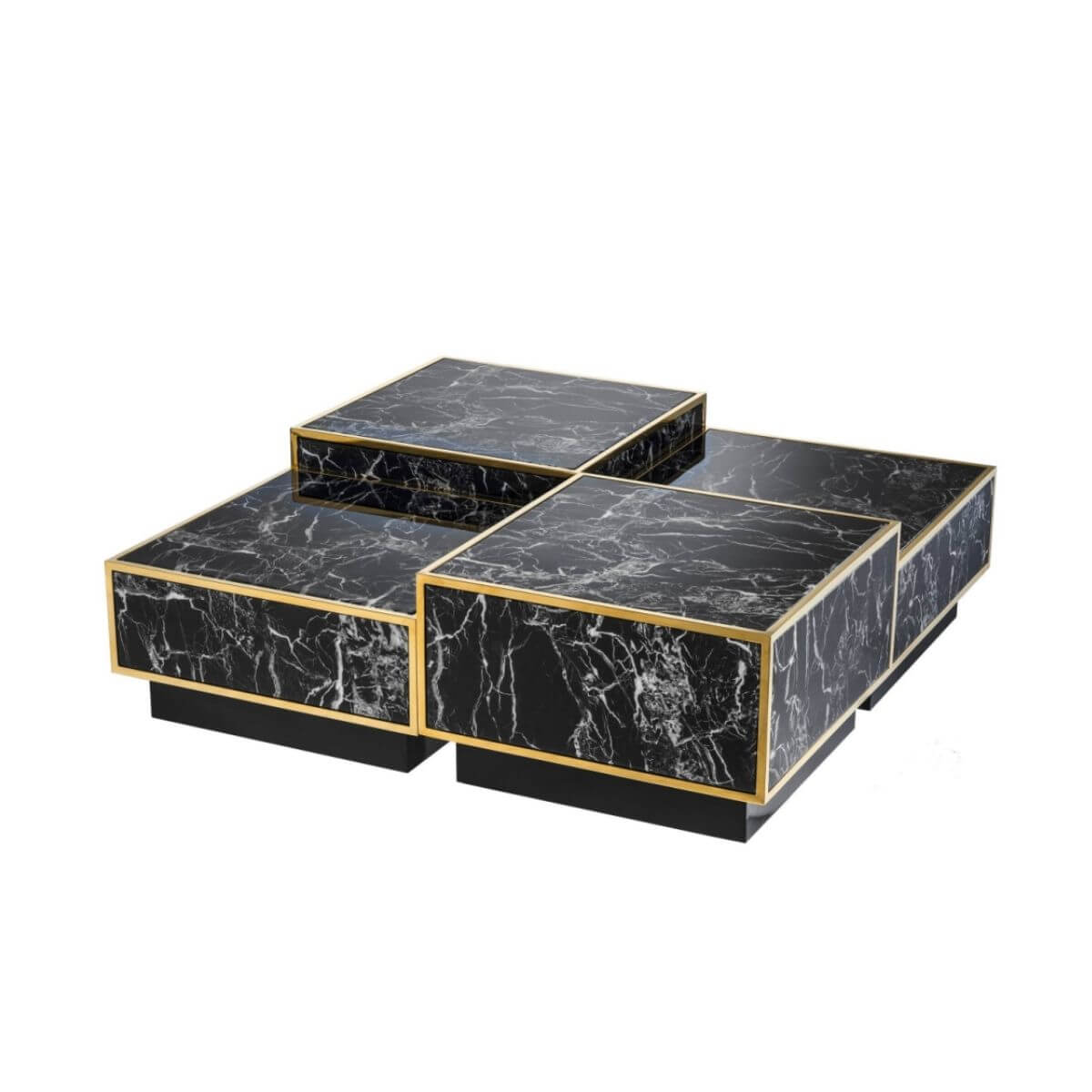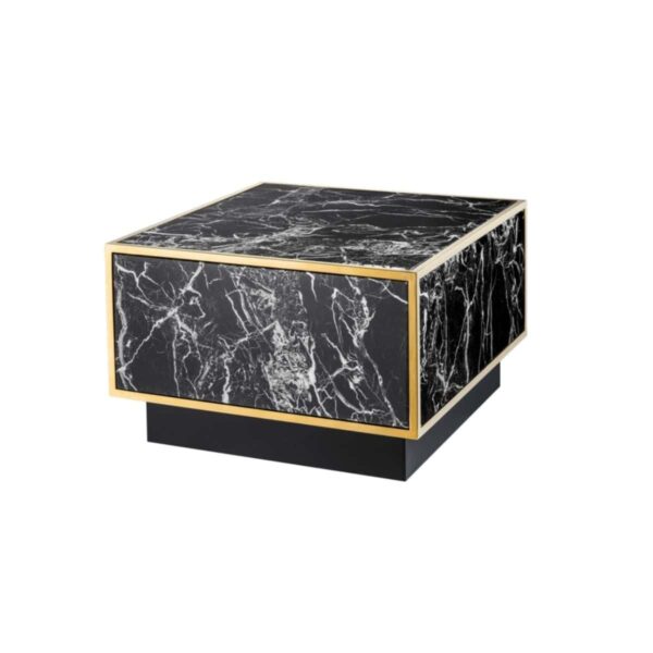 Table basse Colette – L 65 x P 65 x H 32 cm – Effet Marbre/Laiton