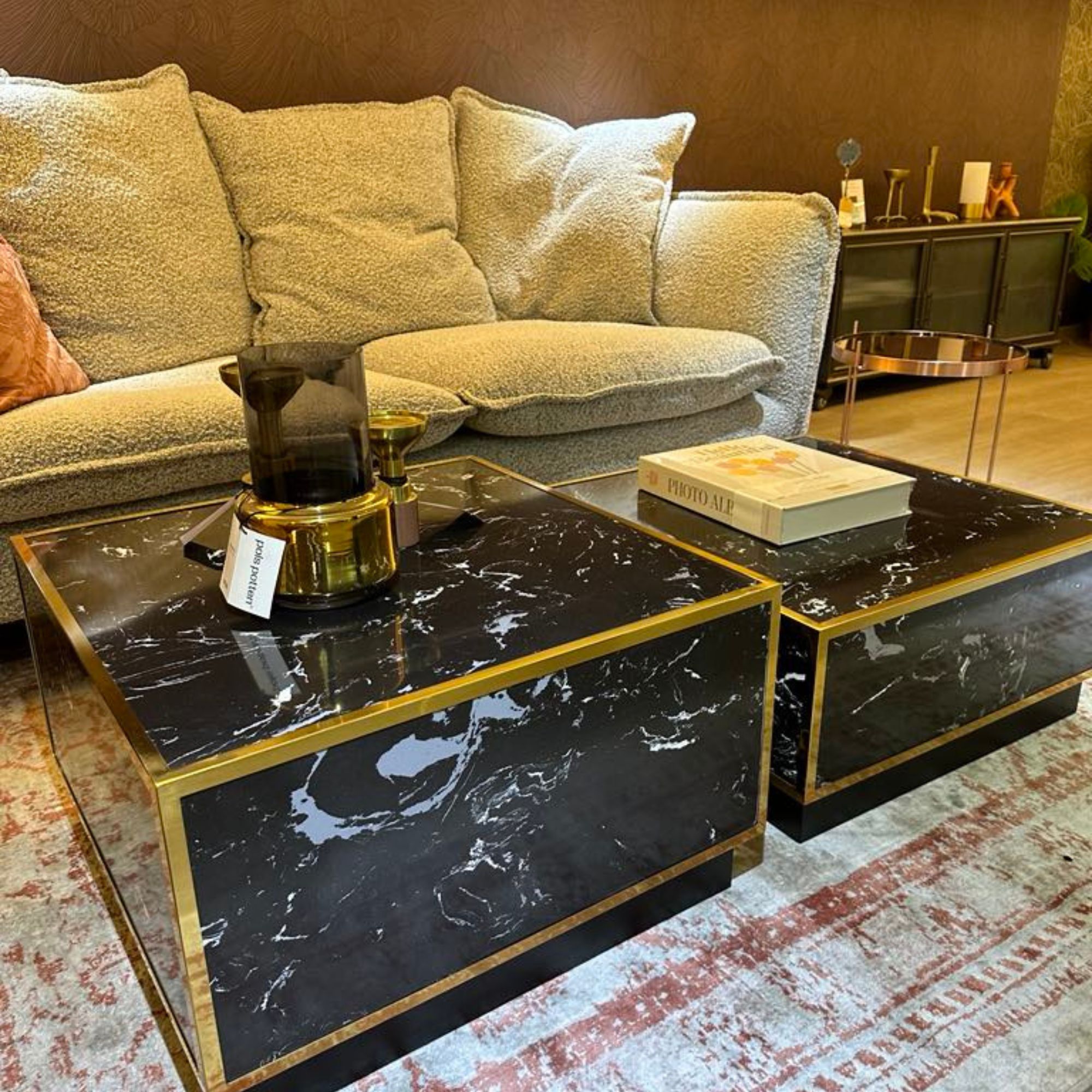 Cette sublime table basse rend hommage à la beauté du marbre, sublimée par la pureté géométrique de la forme. Ce bloc de bois en placage effet marbre répond à plusieurs fonctions : bout de canapé, table de nuit… Il peut bien sûr servir de piédestal majestueux pour exposer vos plus belles pièces de déco : sculptures, vases, lampes…
