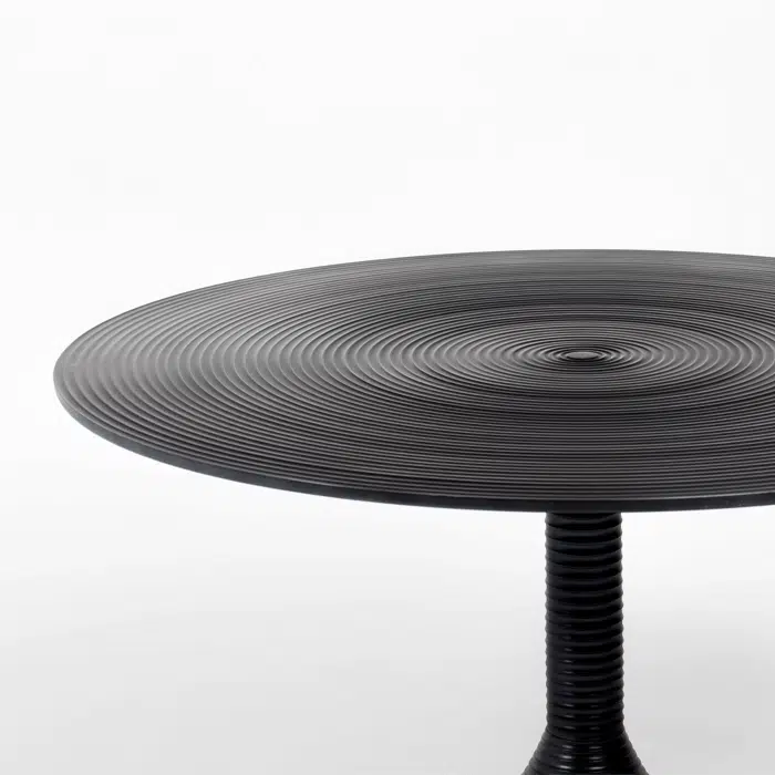 Avec des dimensions généreuses de Ø 77 x H 40 cm, cette table basse est idéale pour servir de point central dans votre salon. Son plateau texturé et sa base ronde audacieuse s’inspirent du style art déco, offrant une élégance sophistiquée et intemporelle. Fabriquée en aluminium noir, elle combine durabilité et esthétique, ce qui en fait un choix parfait pour ceux qui recherchent à la fois la beauté et la fonctionnalité.
