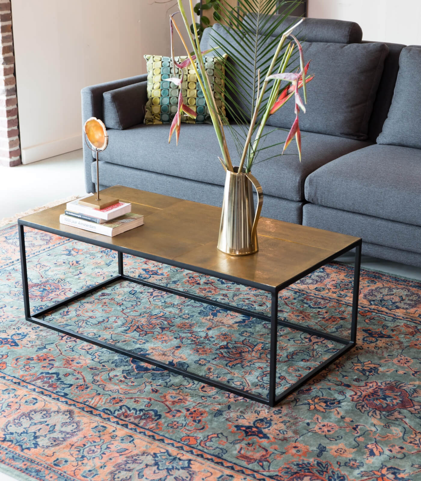 On aime cette belle table basse pile dans l’air du temps avec son plateau en finition laiton ! Intemporelle, elle pourra se marier avec tous les types d’intérieures pour un rendu chaleureux garanti. Le plateau est un élément essentiel de cette table basse, car il est constitué de plusieurs plaques d’aluminium de différentes tailles assemblées les unes aux autres avec finition laiton laqué lui donnant un effet naturel. On adore !