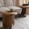 Apportez une touche naturelle et élégante à votre intérieur avec la table basse Maeze. Fabriquée en bois de manguier, son design arrondi et son plateau incurvé rappellent les colonnes ioniques, offrant une esthétique unique et stable. Idéale pour poser un livre ou une tasse de thé, elle s’intègre parfaitement dans un salon sophistiqué et épuré, ajoutant une ambiance chaleureuse inspirée de la Grèce.