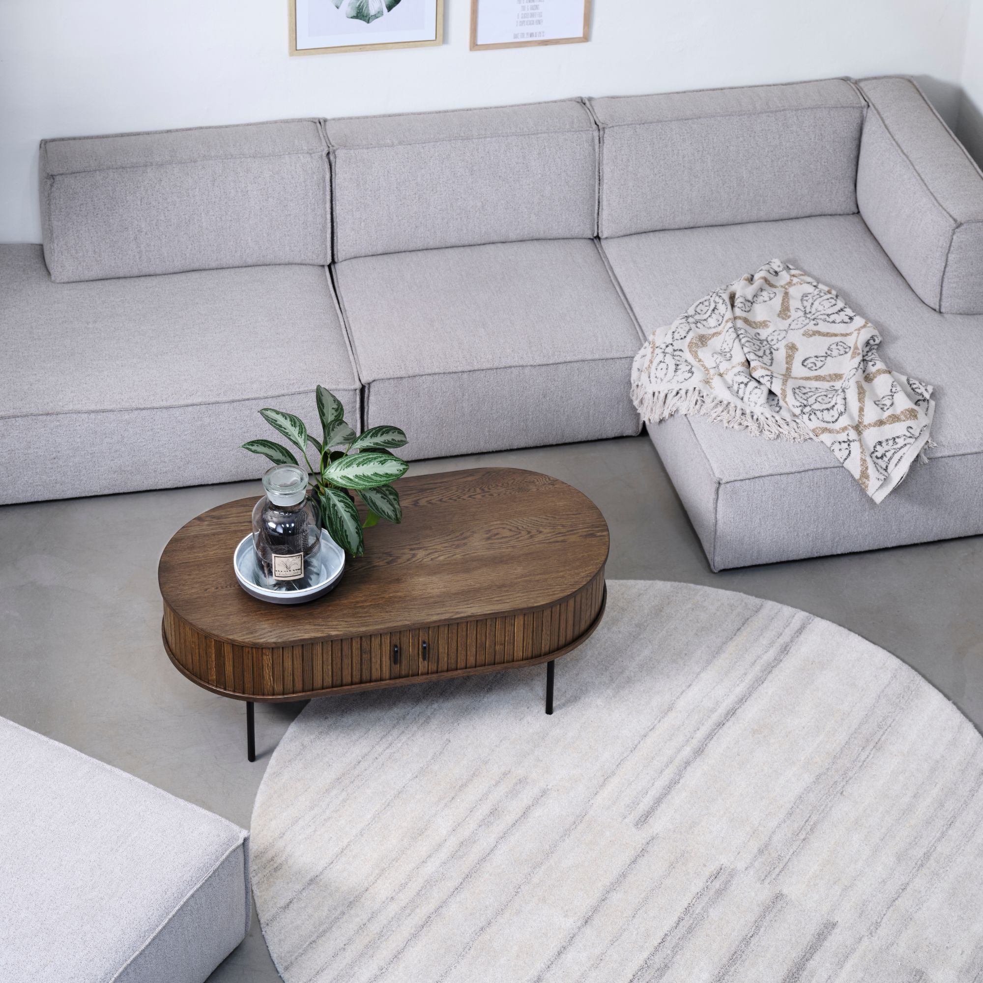 Avec ses dimensions de 120 cm, la table basse Nola offre un espace confortable pour accueillir livres, objets décoratifs ou plateaux, tout en restant proportionnée pour la plupart des salons.