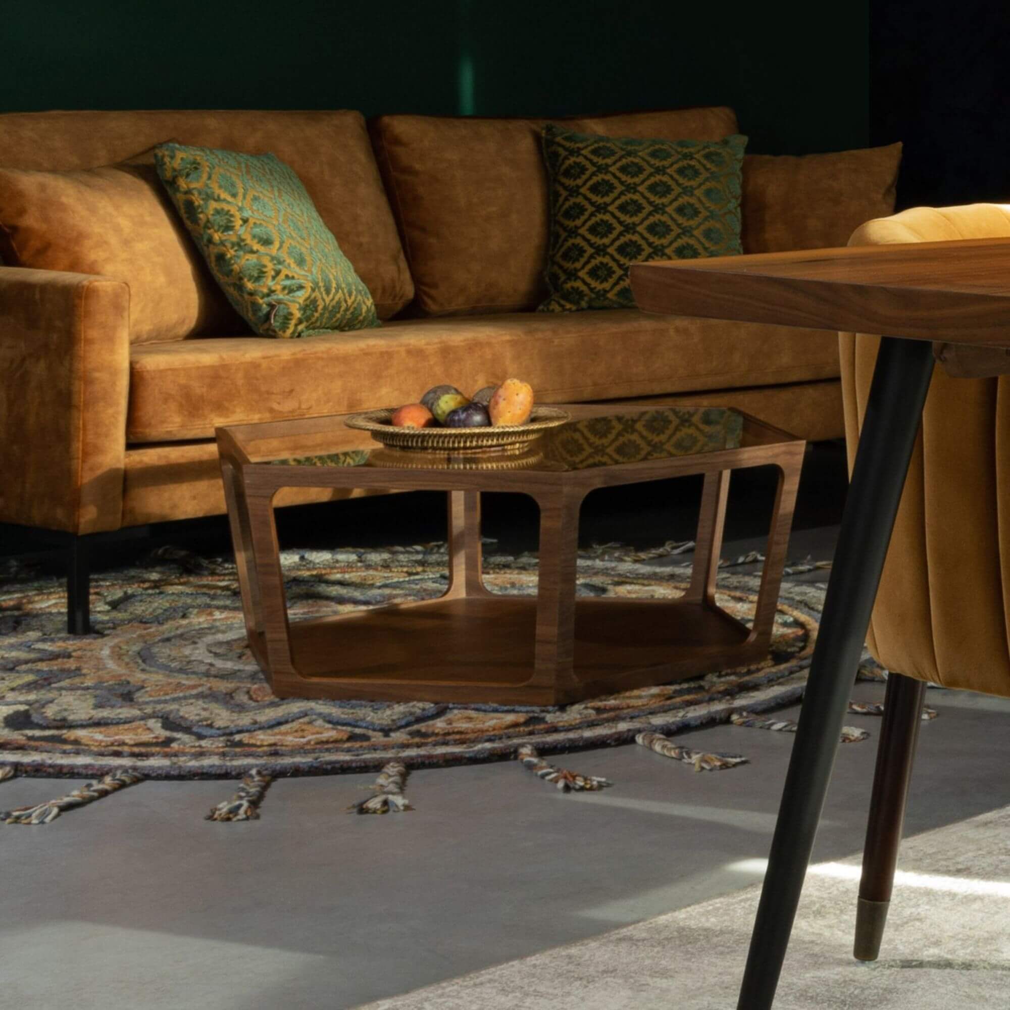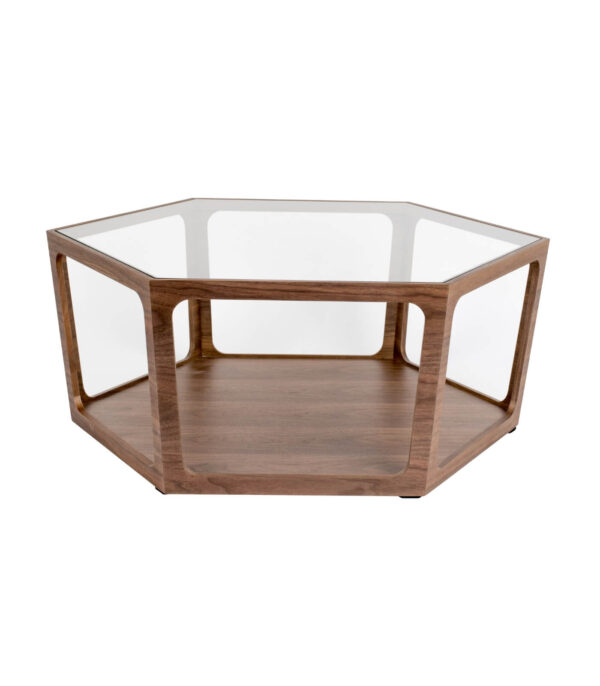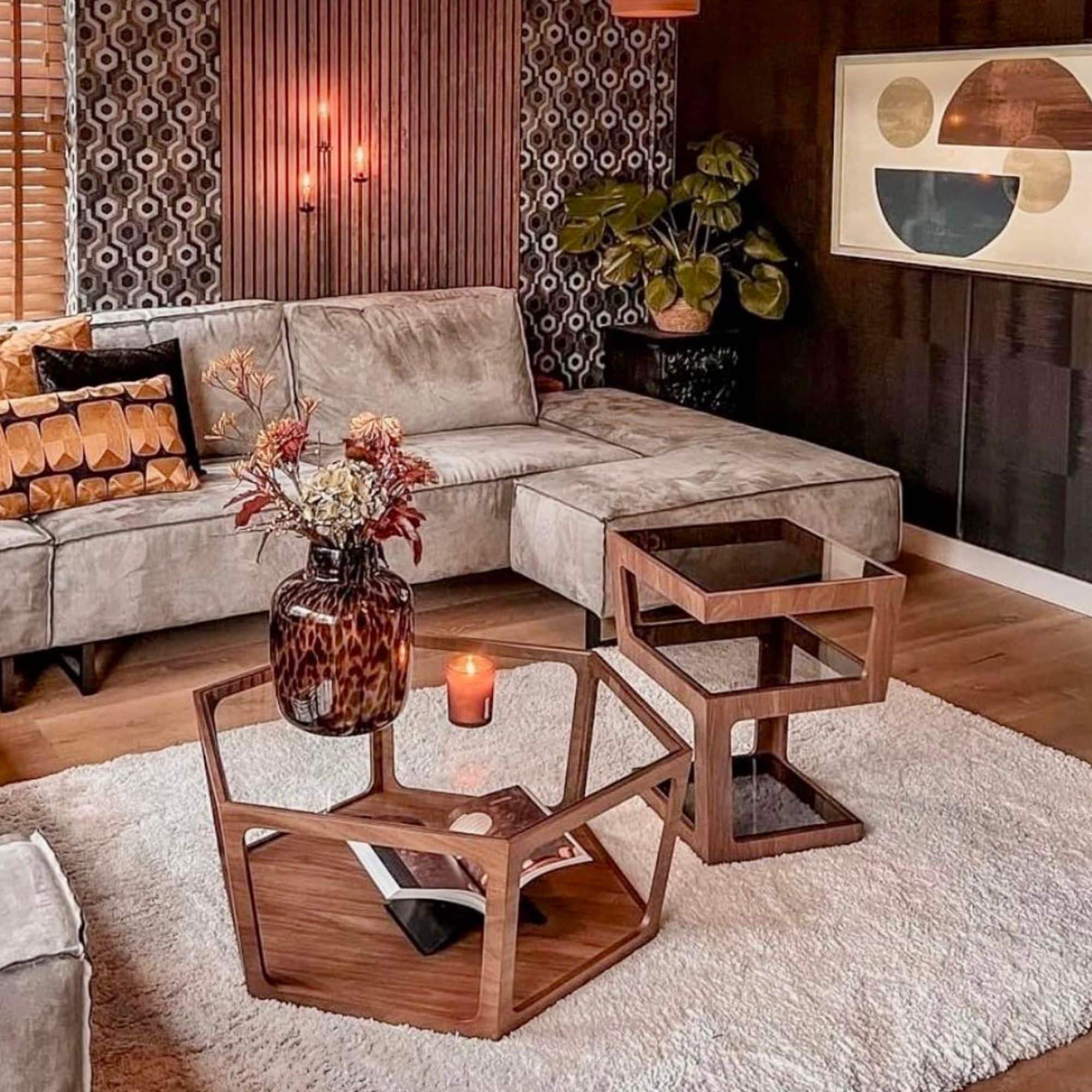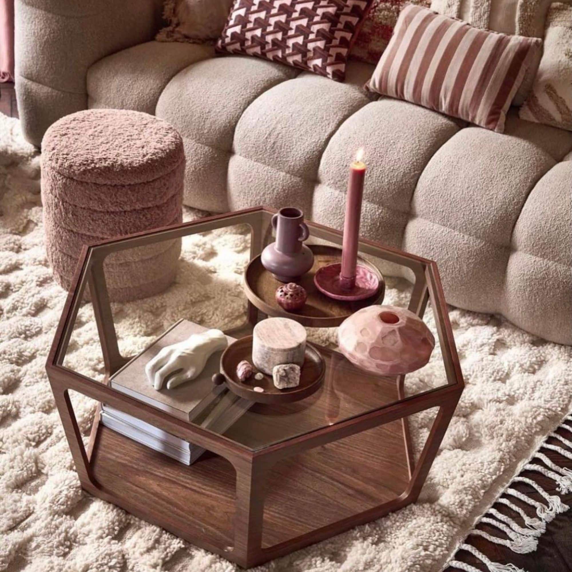 On craque pour cette sublime table basse en noyer et verre fumé ! Son style résolument art déco et vintage nous fait de l’oeil.. Divine !