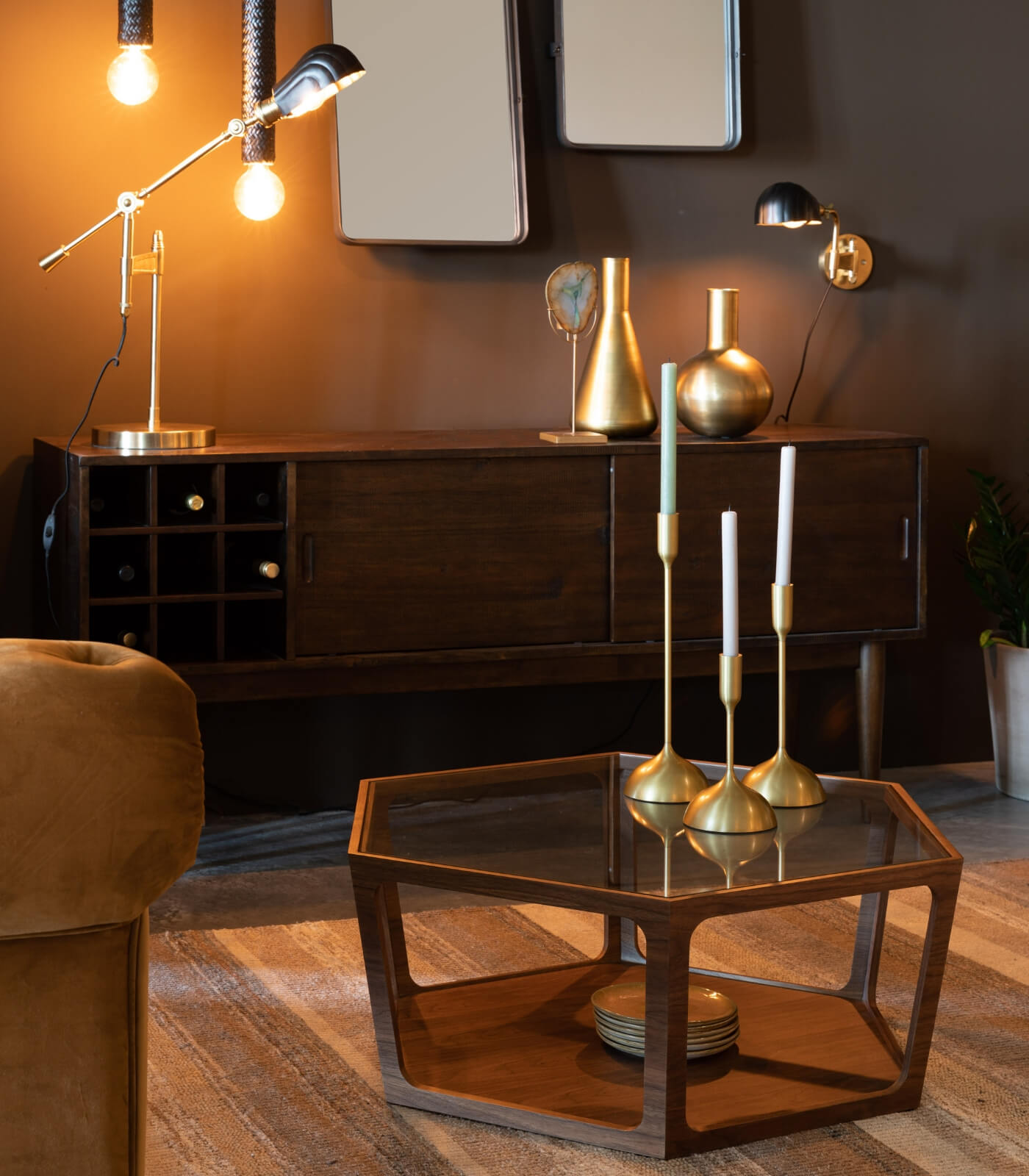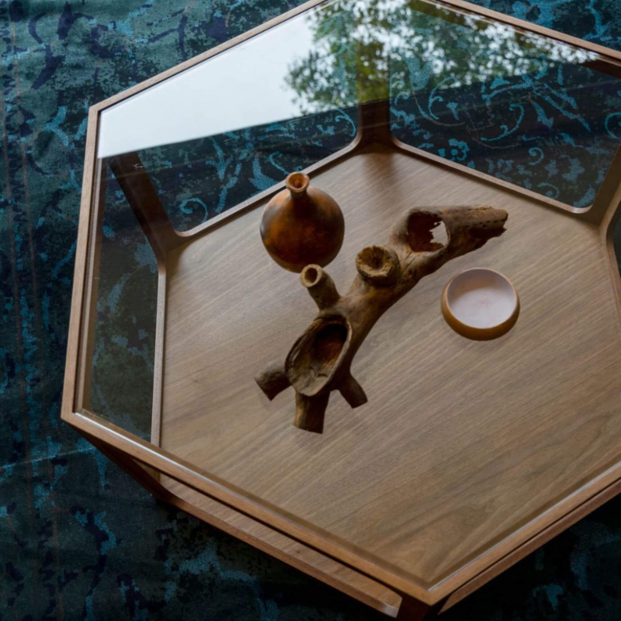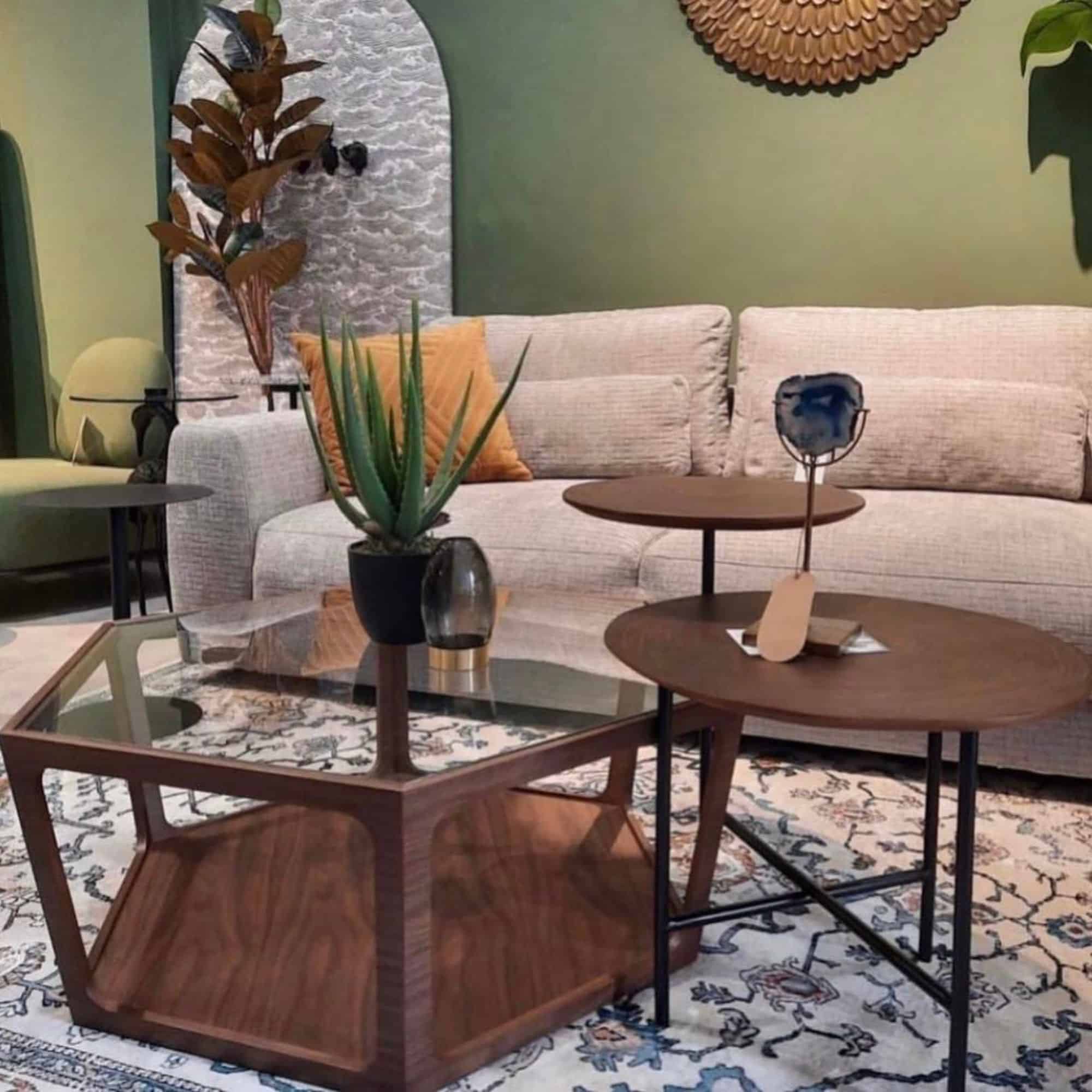 On craque pour cette sublime table basse en noyer et verre fumé ! Son style résolument art déco et vintage nous fait de l’oeil.. Divine !