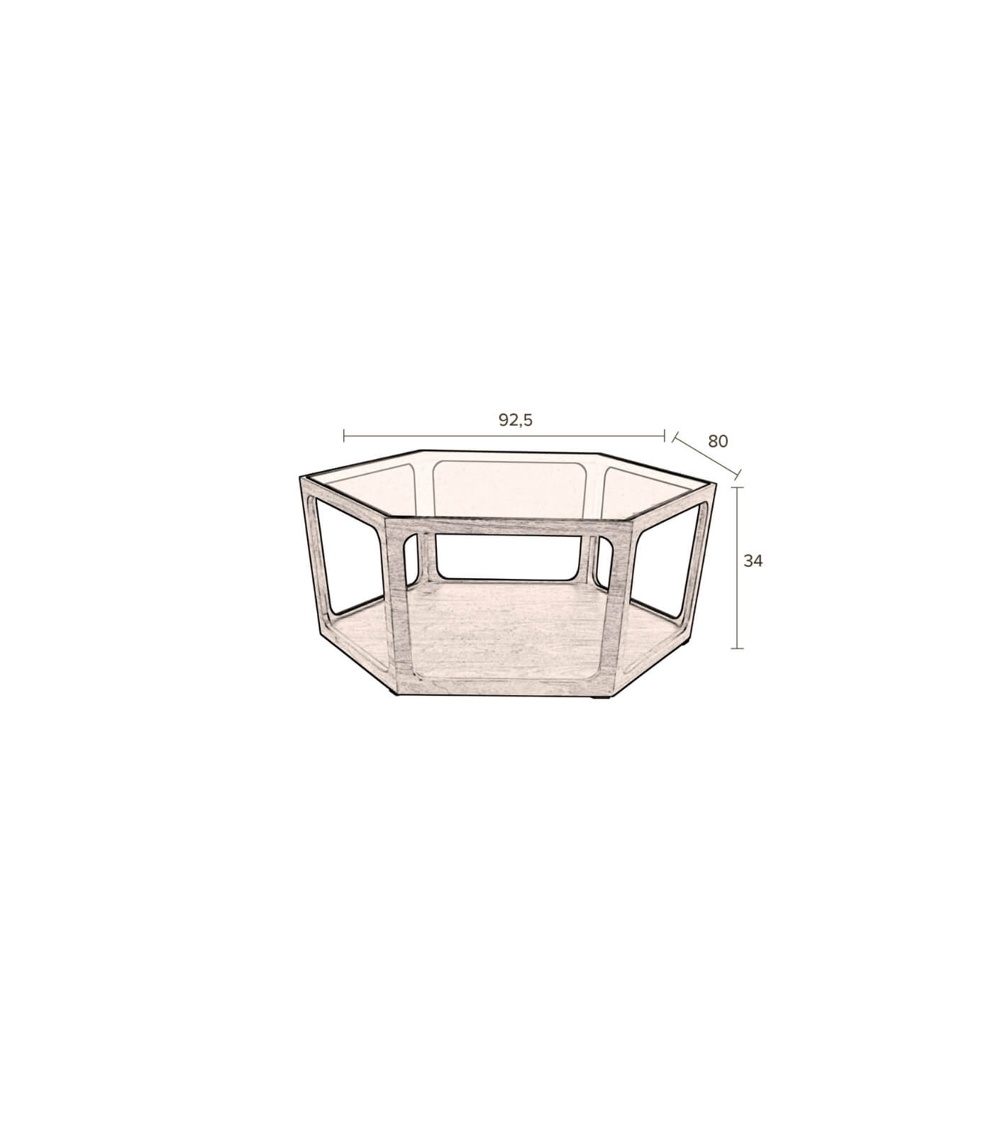 Dim.: L 80 x P 92,5 x H 34 cm