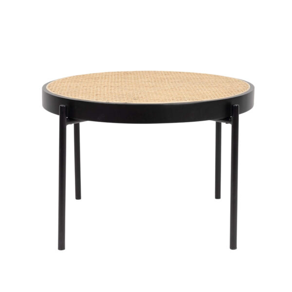 Table basse Spike – Ø60 cm – Plateau en cannage & pieds métal noir