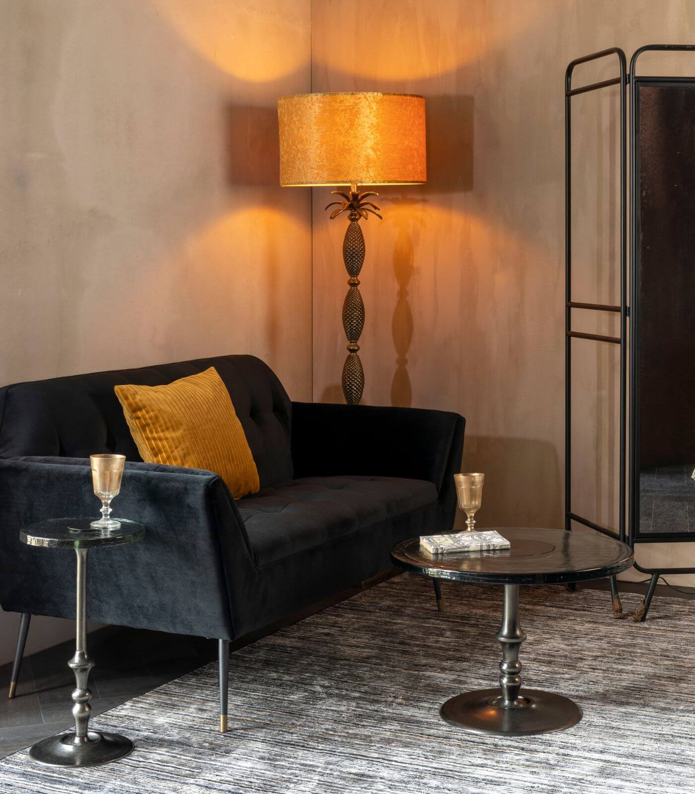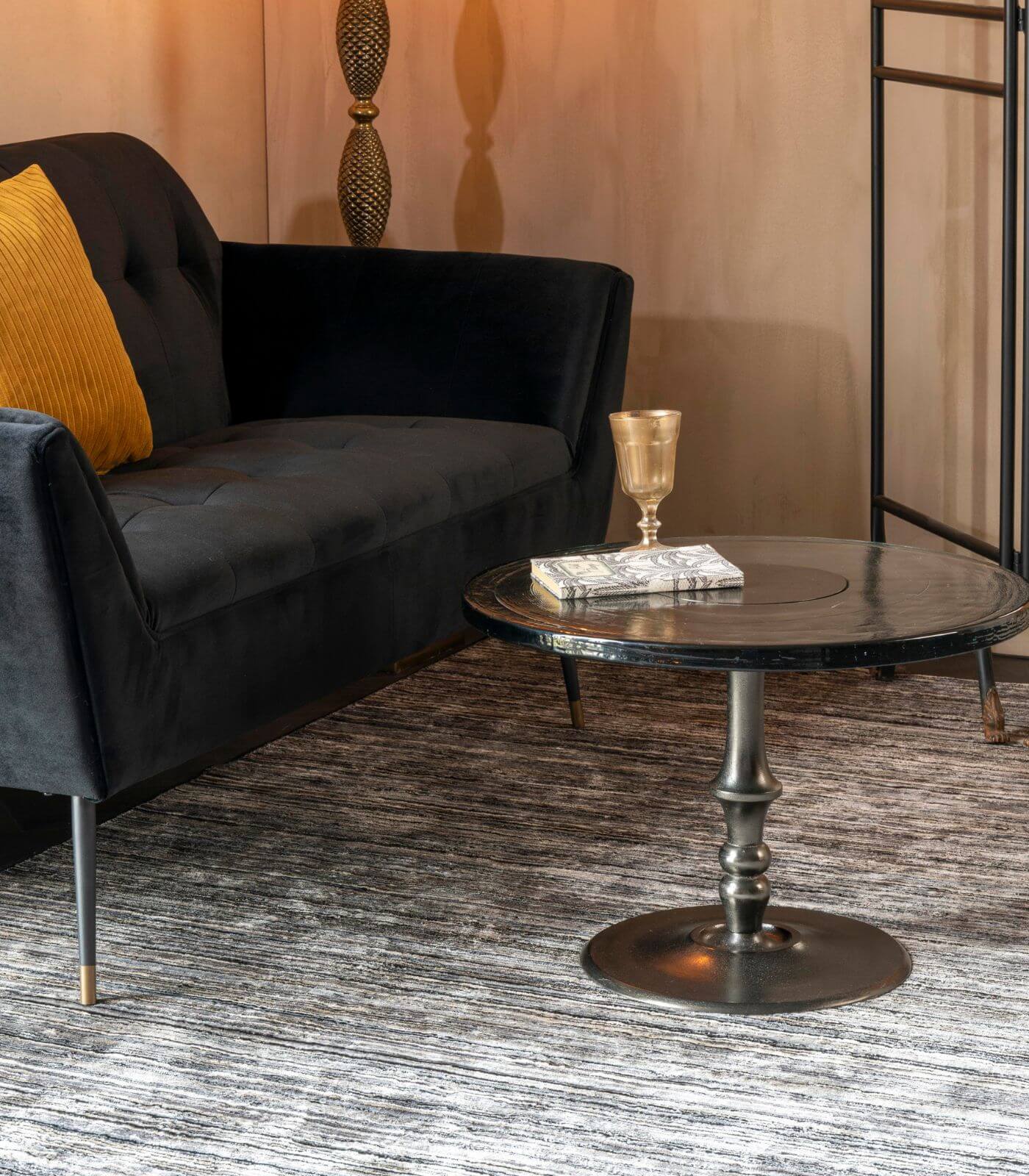 Sue habille sa structure en métal d’une finition patinée chic et élégante.