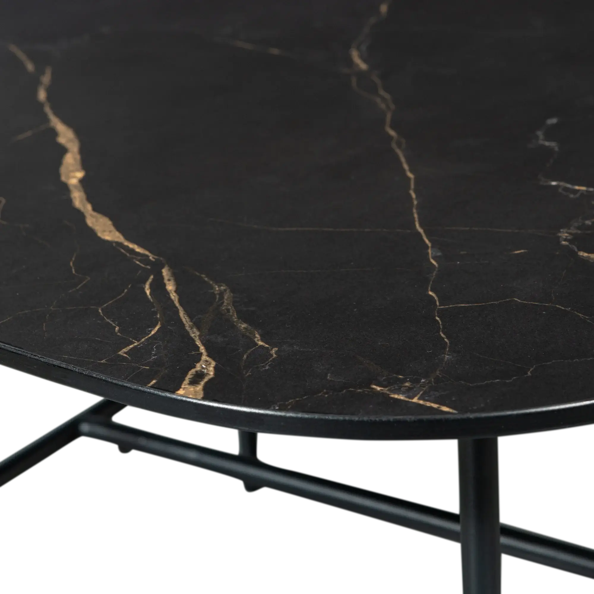Table basse Vajen – Plateau marbre look noir – 70×70 cm