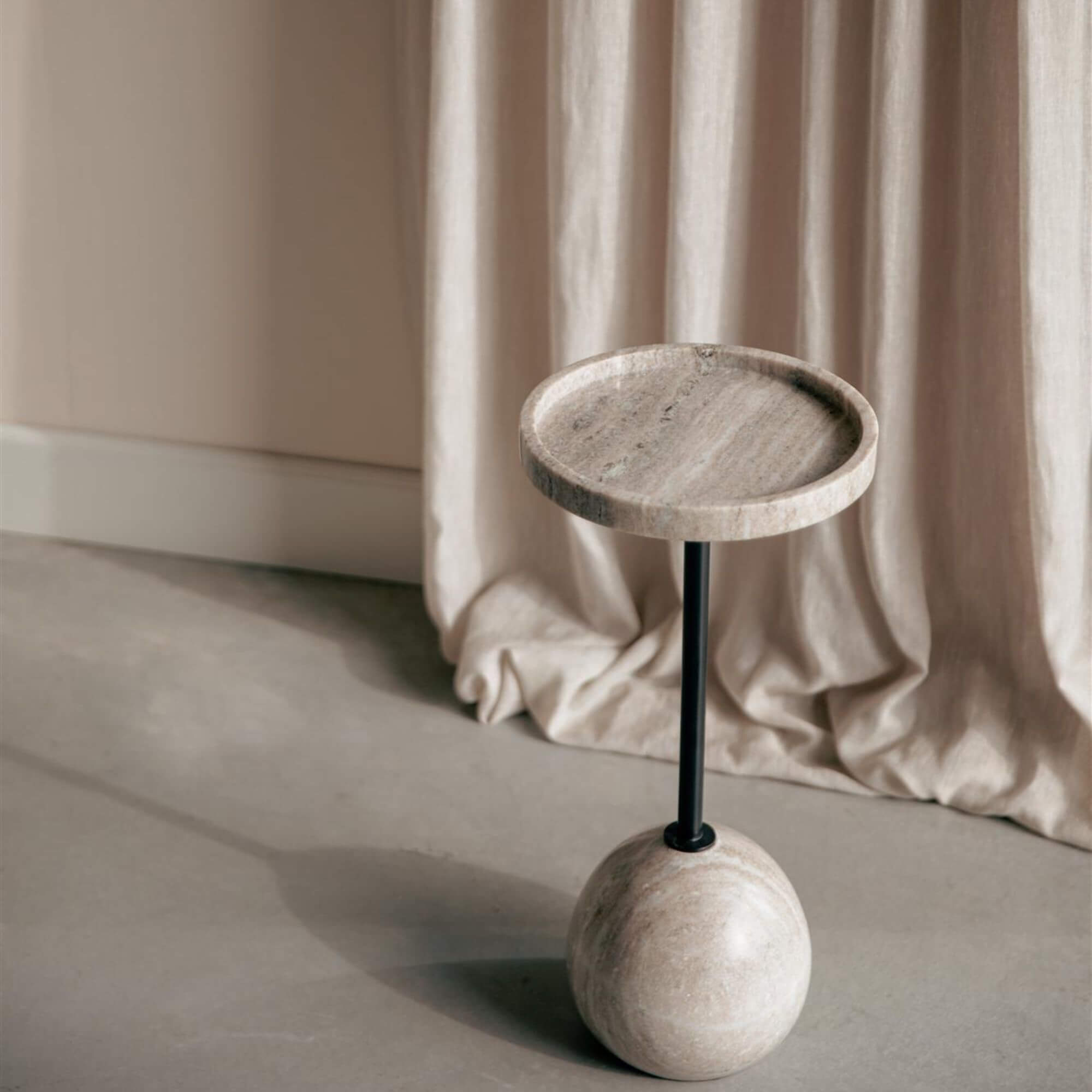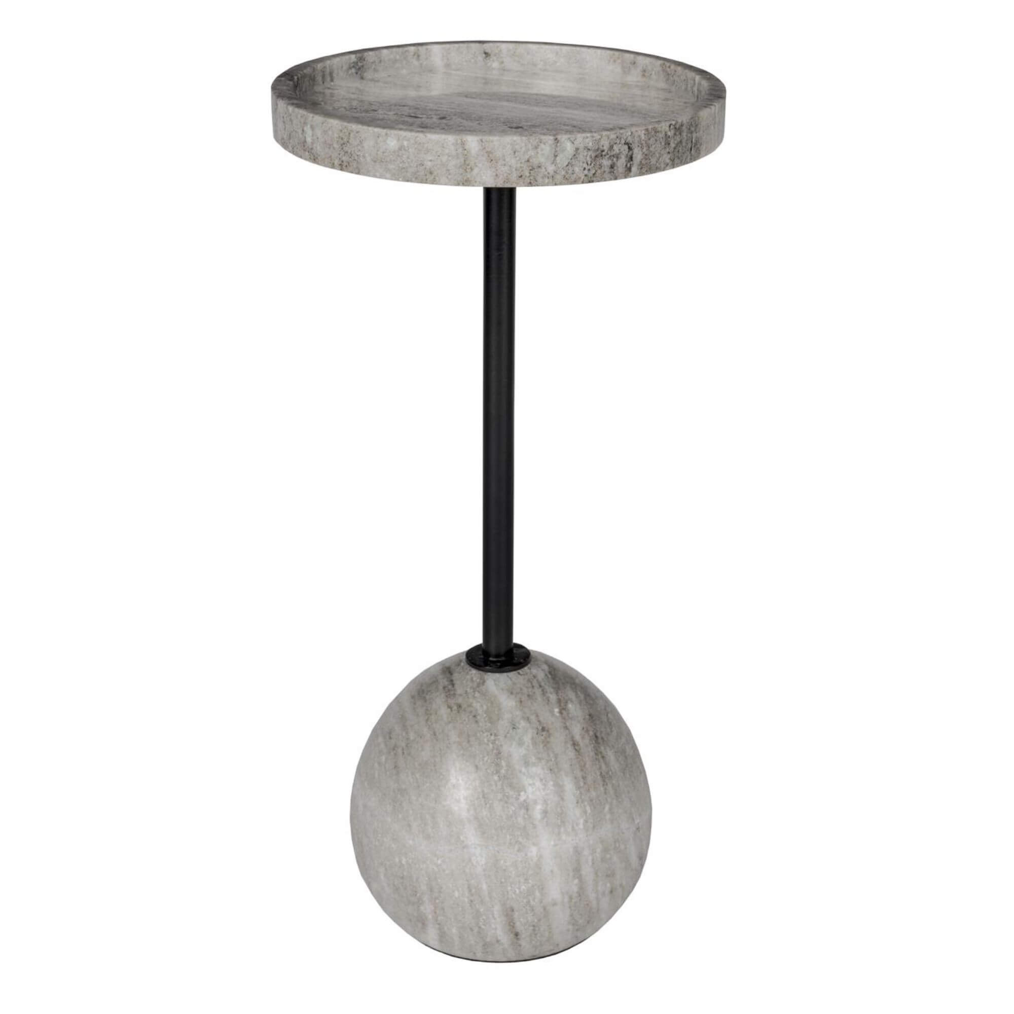 Le plateau en marbre respire le luxe et le raffinement, tandis que son pied en forme de boule ronde apporte une note ludique. Le rebord légèrement surélevé garde vos verres bien en place, et la tige centrale assure un maintien solide et équilibré. Une alliance parfaite entre élégance, originalité et praticité.