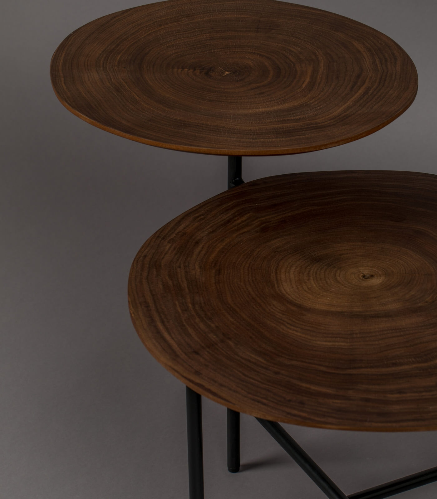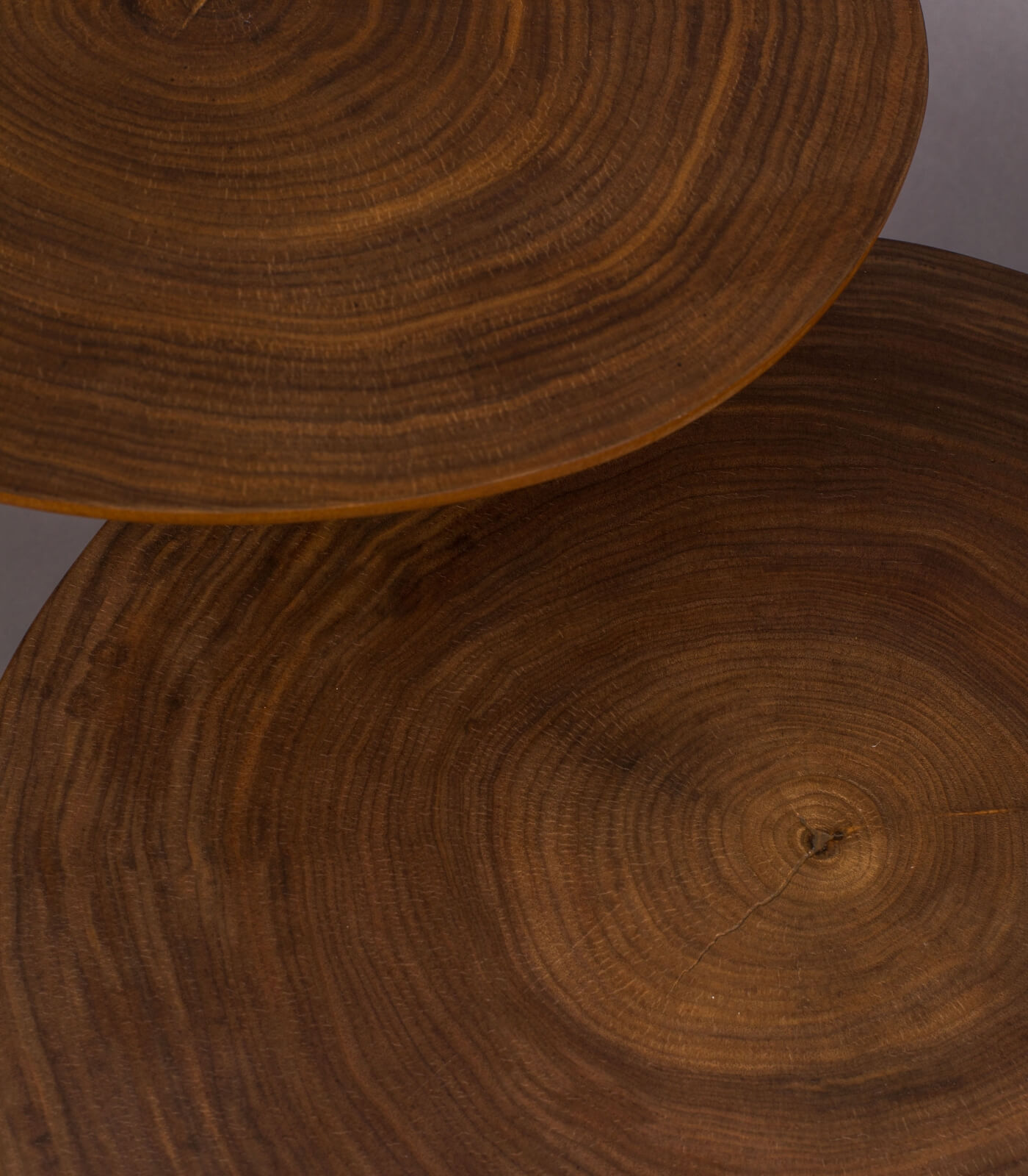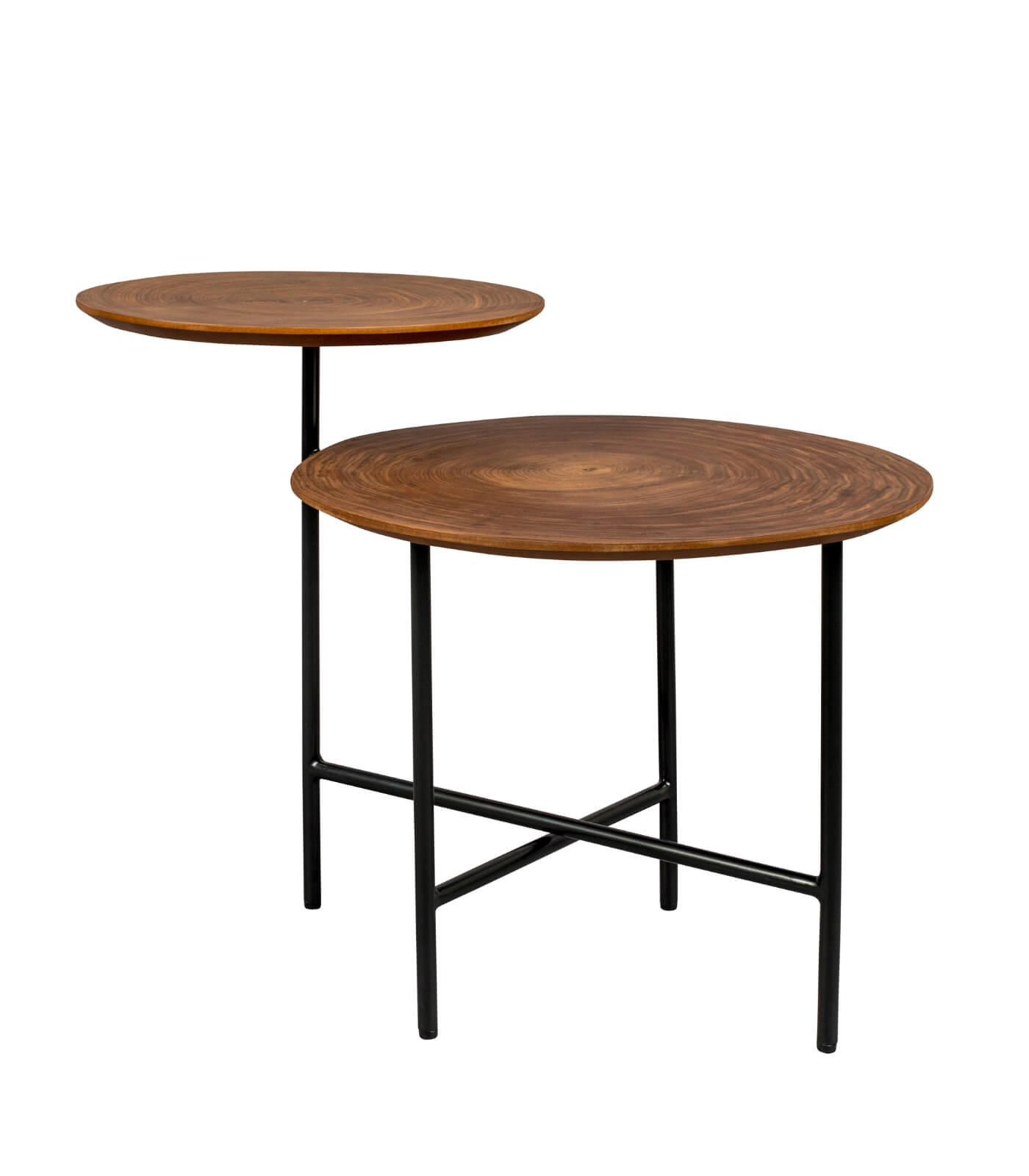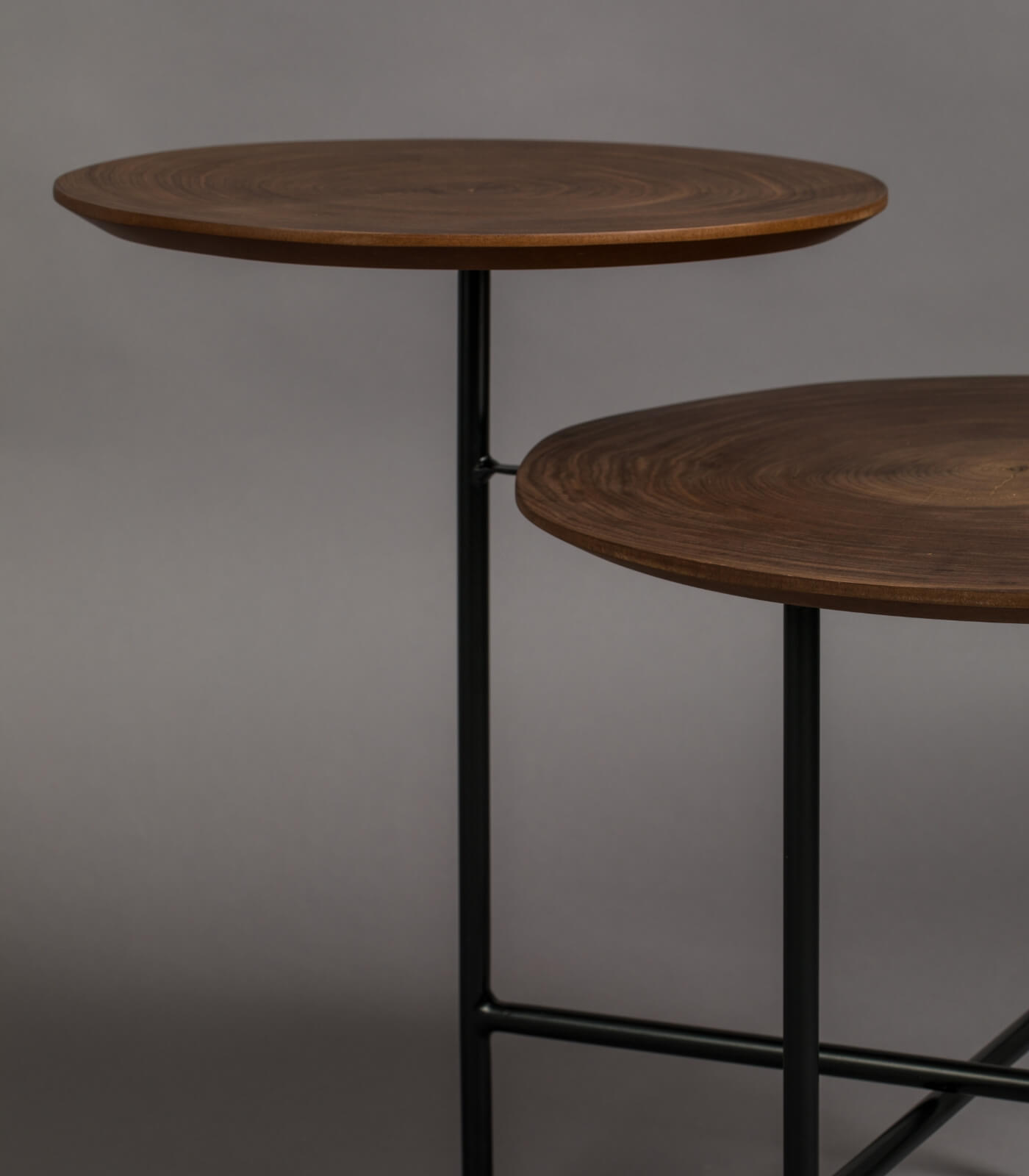 Effet WOW assuré avec cette table au double plateau. Design et sobre, elle fera impression lors de vos soirées entre amis ou en famille. Son design ethnique est marqué grâce à ses deux plateaux en forme de rondin de bois. Cette surface est en placage de noyer particulièrement réaliste avec des fissures et des anneaux de croissances décoratives.