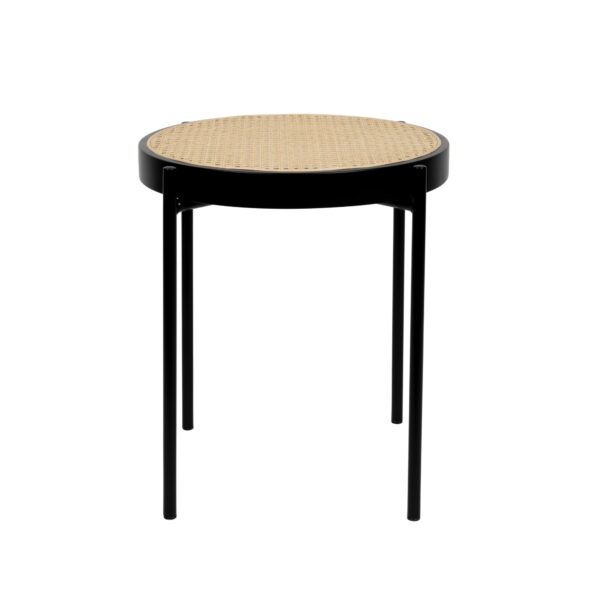 Plateau : Centre en cannage naturel, cadre en métal noir