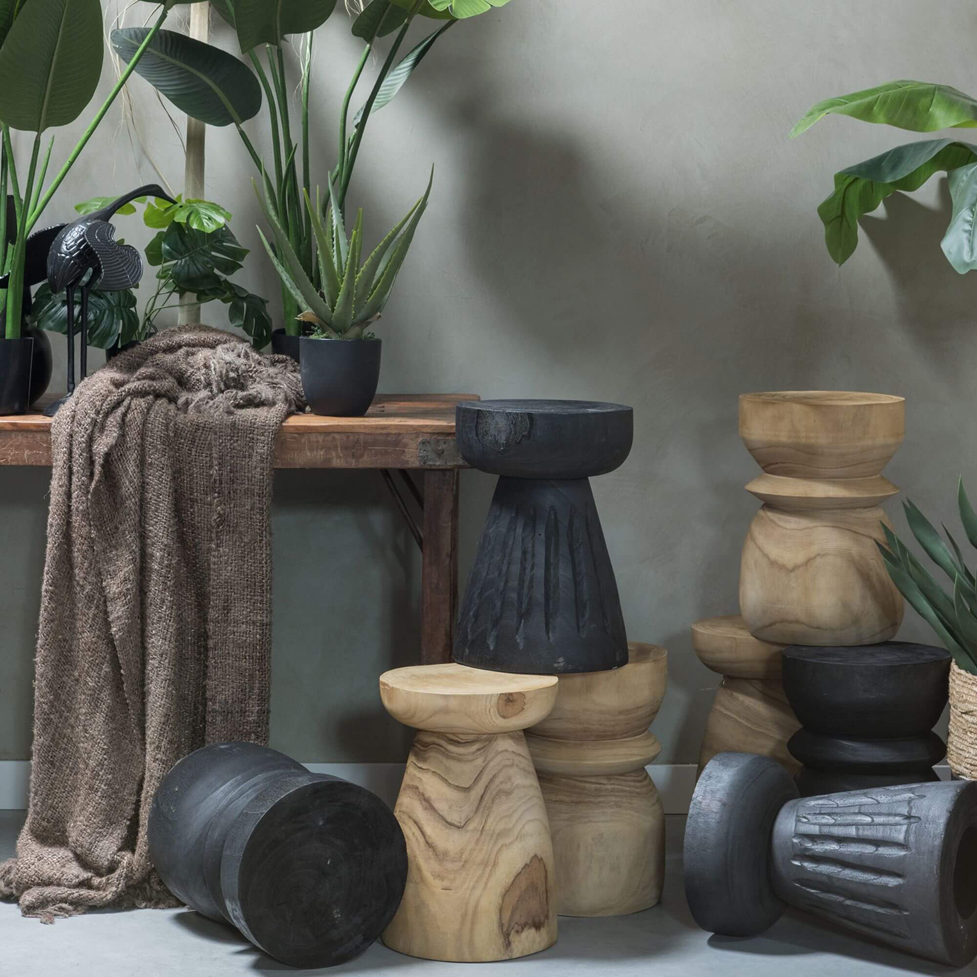 La table d’appoint/tabouret Borre est un élément qui apporte une touche surprenante à tout intérieur. Fabriquée en bois de paulownia, connu pour sa croissance rapide, elle présente des caractéristiques noueuses, des fissures et des trous qui lui confèrent un caractère robuste et authentique.